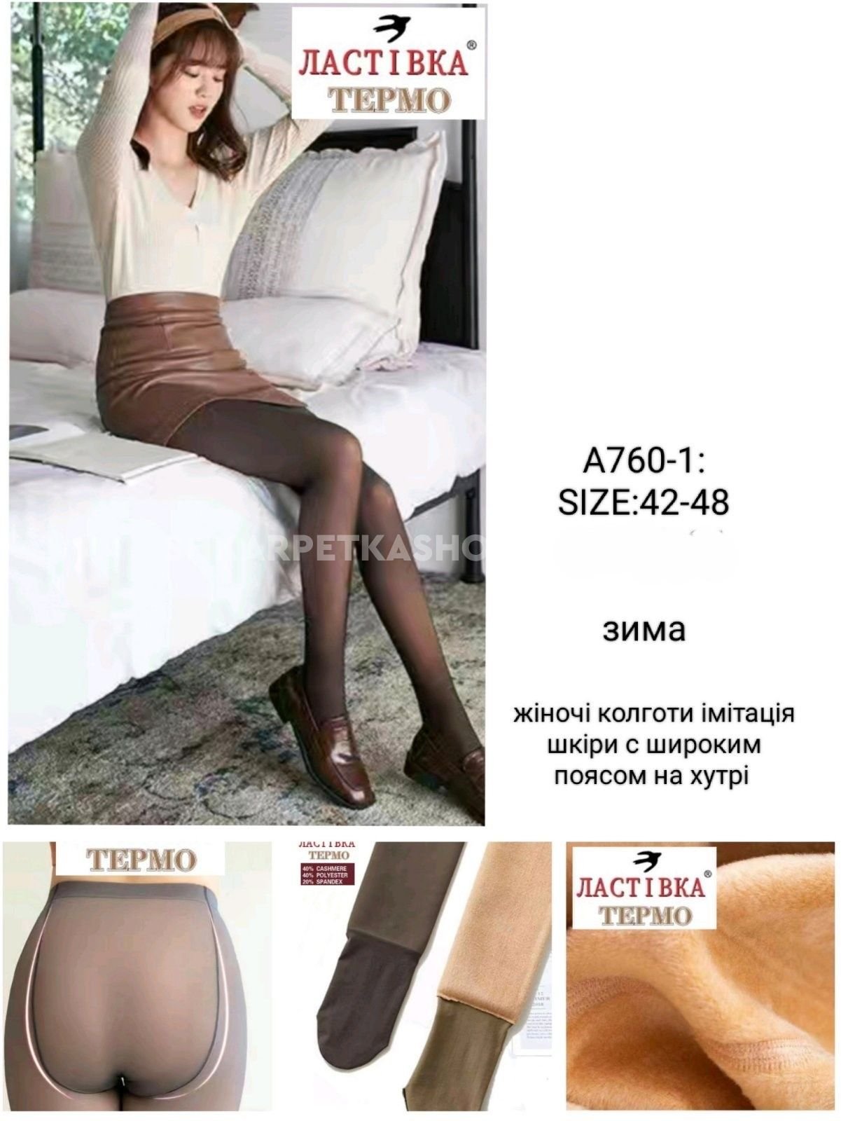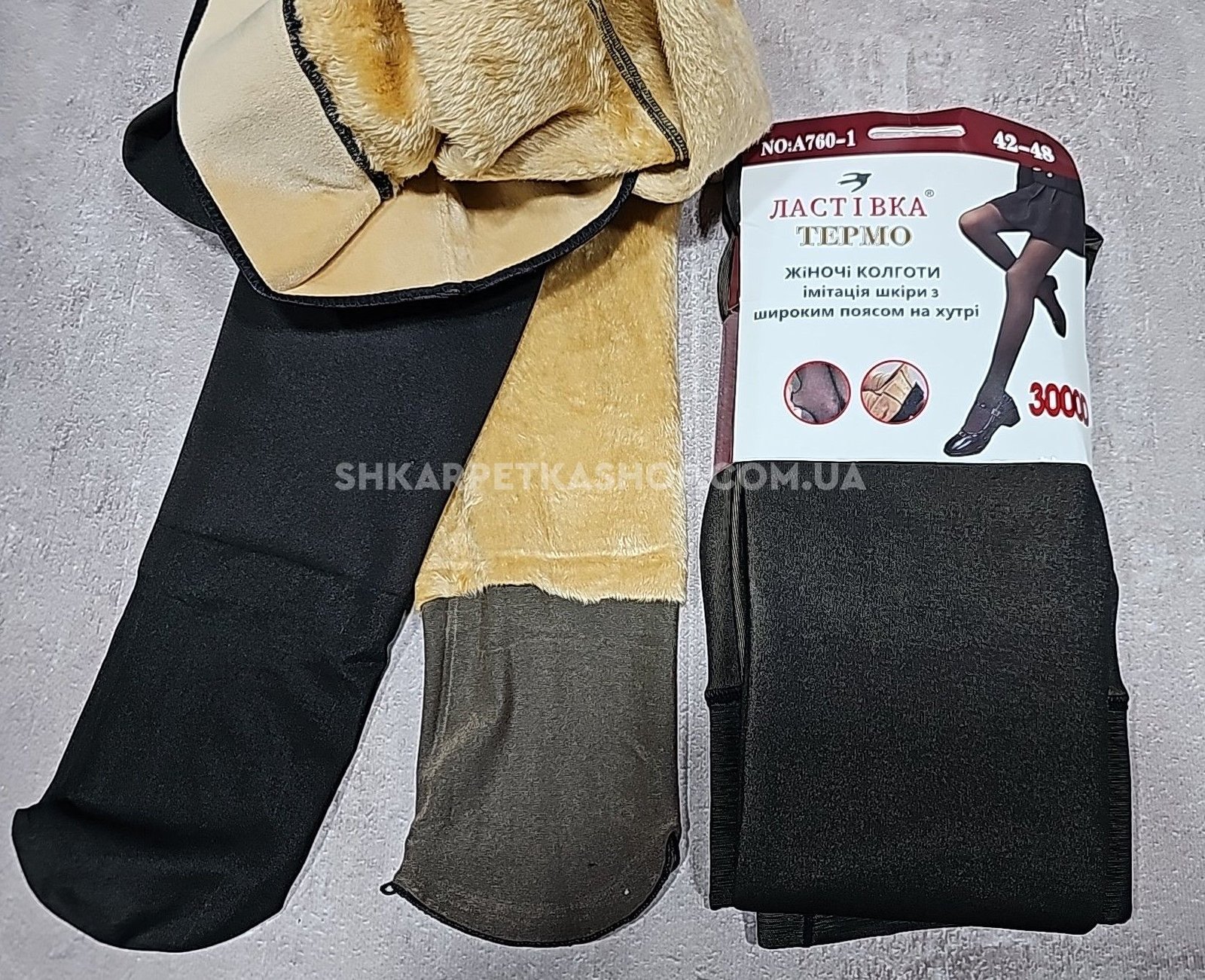 Колготки "Ластівка" А760-1 -(42-48) на хутрі до стопи з імітацією капронових, щільність 3000D з ефектом голих ніжок, позаду 1 шов -(чорні) -уп. 1 шт