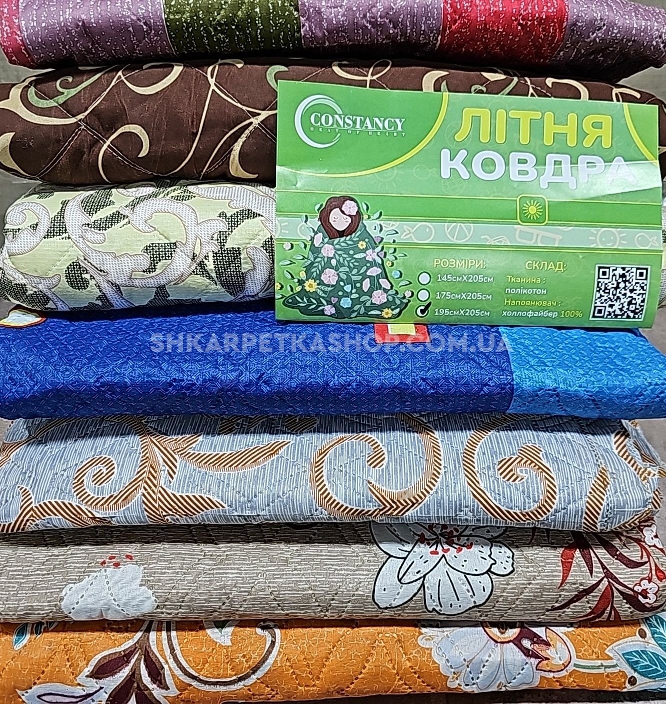 Ковдра -покривало 0221 "Constansy Літня -Мікс" - 1.5 (полуторна) з тканини полікоттон + наповнювач холлофайбер, р. +/- 145*205 -(мікс забарвлень і візерунків -без вибору!)