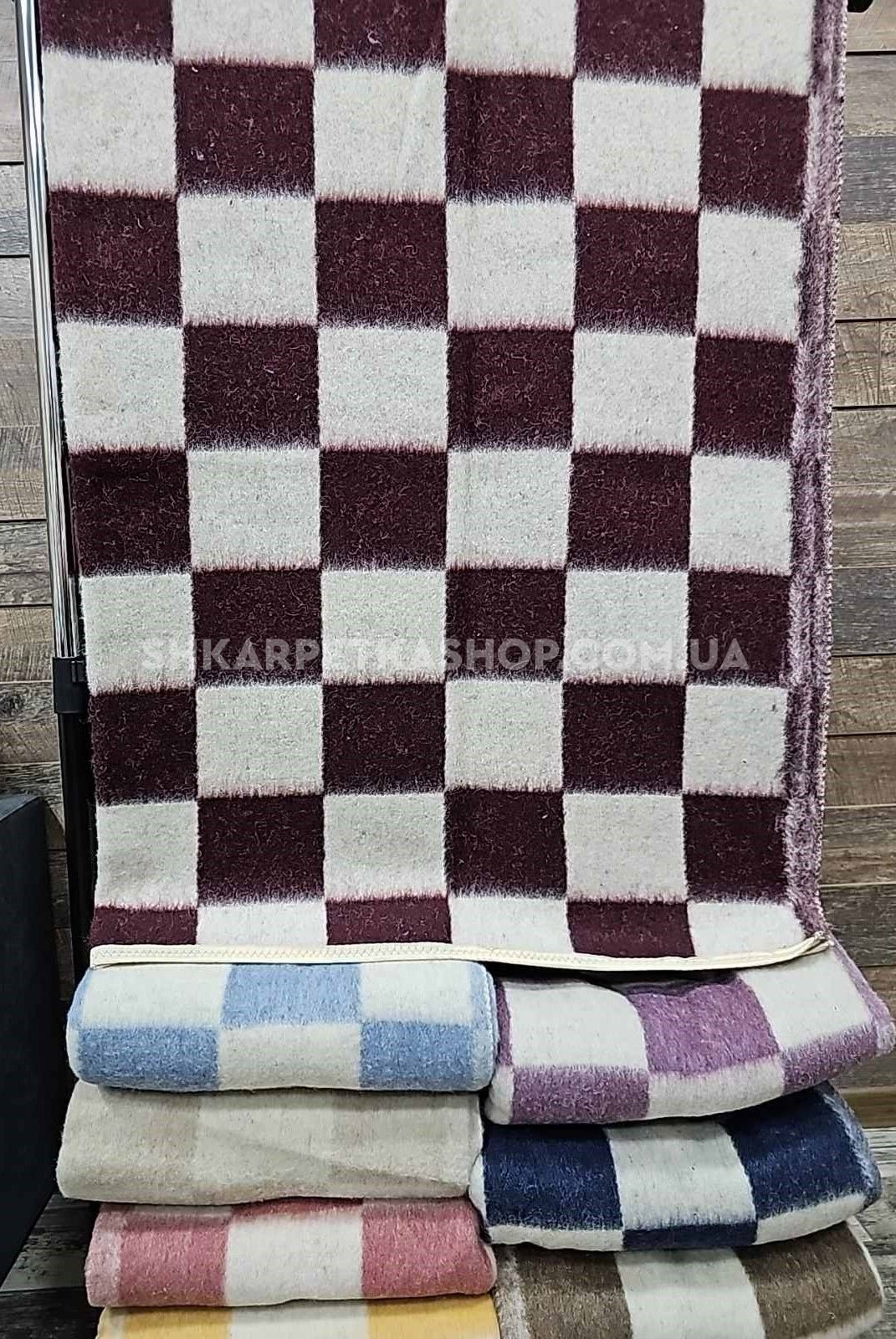 Ковдра натуральна "Шермі" 15-20 полуторна вовняна, р. +/-150*210 -(Великі клітини -мікс забарвлень без вібору кольору!)