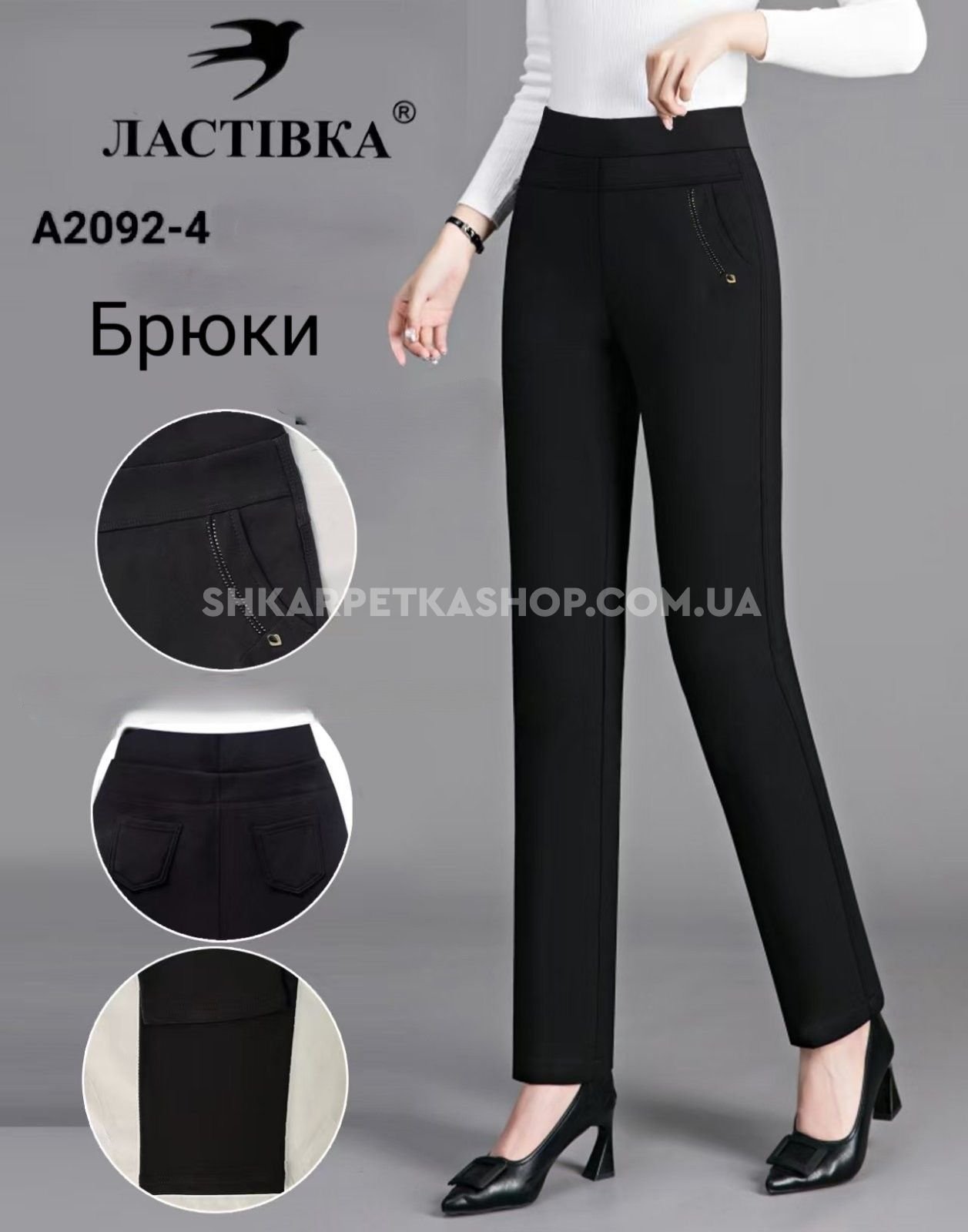 Лосини брючні "Ластівка" А-2092-4 спереду і ззаду кишені, р. 5XL-(52-54), 6XL-(54-56), 7XL-(56-58) -(Чорні)