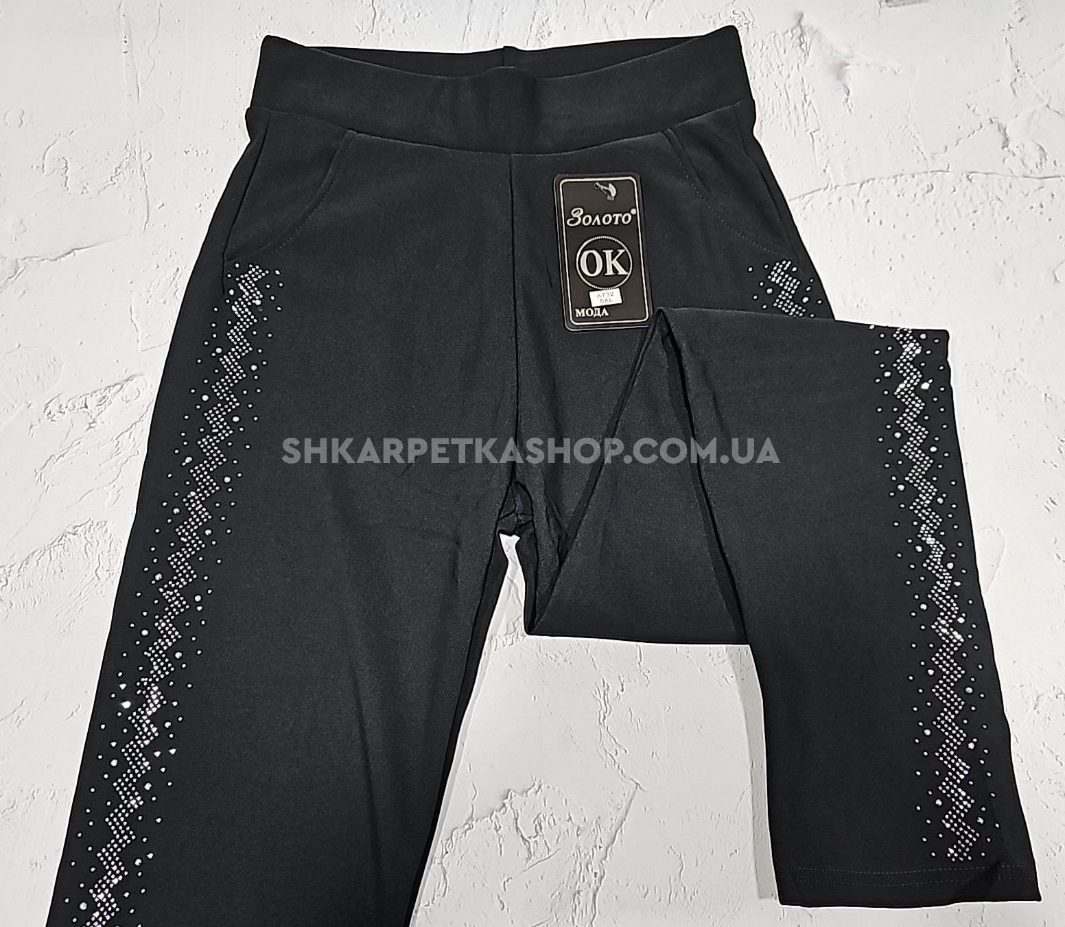 Лосини брючні "Золото" А-732 з боків візерунок з камінчиків +спереду і ззаду кишені, р. 5XL-(46-48), 6XL-(48-50), 7XL-(50-52) -(чорні)