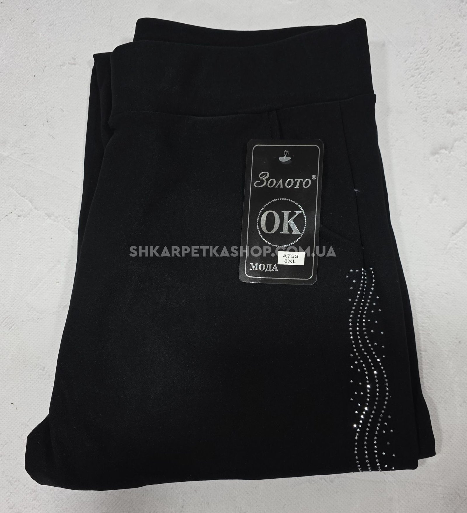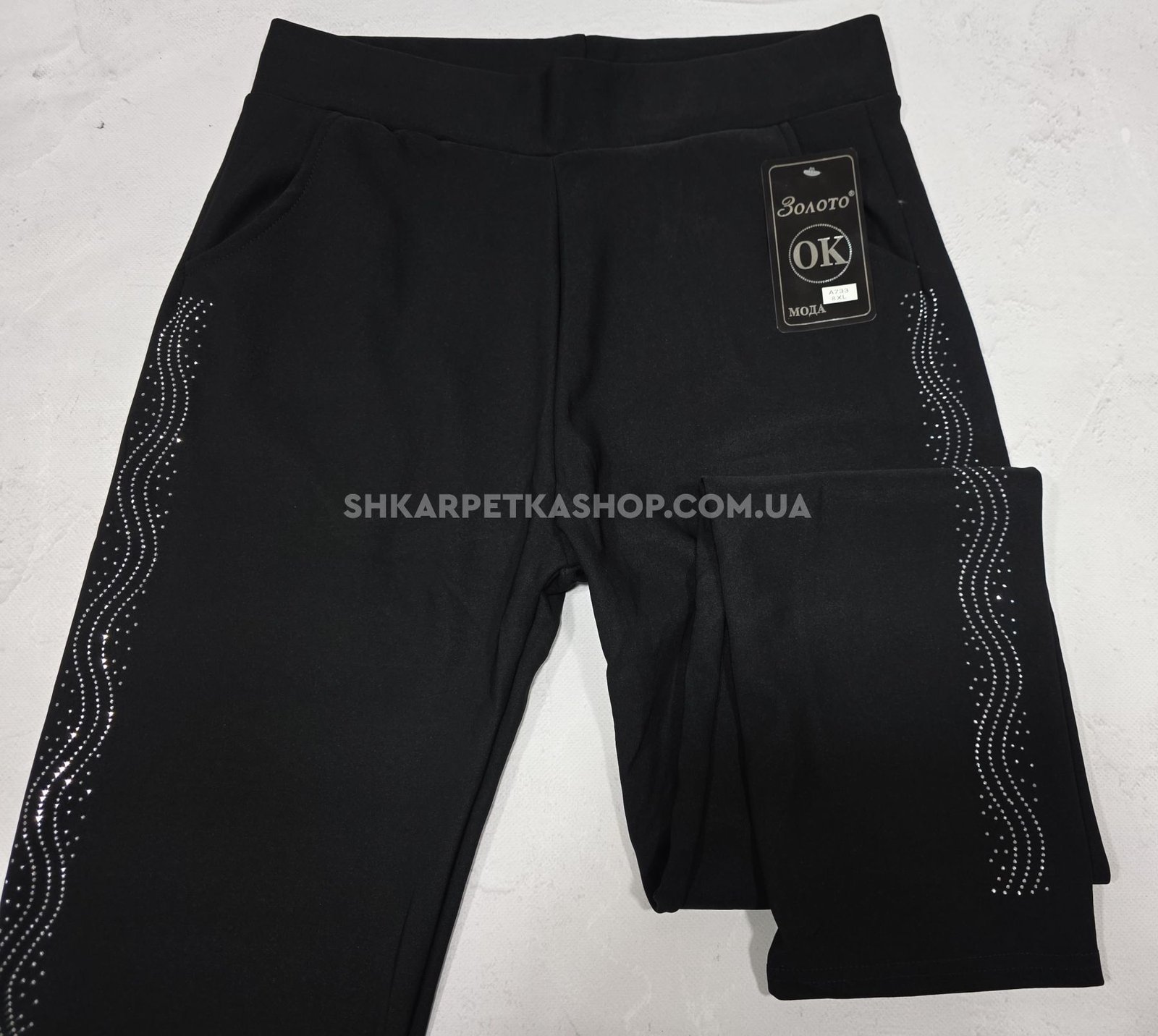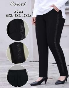 Лосини брючні "Золото" А-733 з боків візерунок з камінчиків +спереду і ззаду кишені, р. 8XL-(50-52), 9XL-(52-54), 10XL-(54-56) -(чорні)