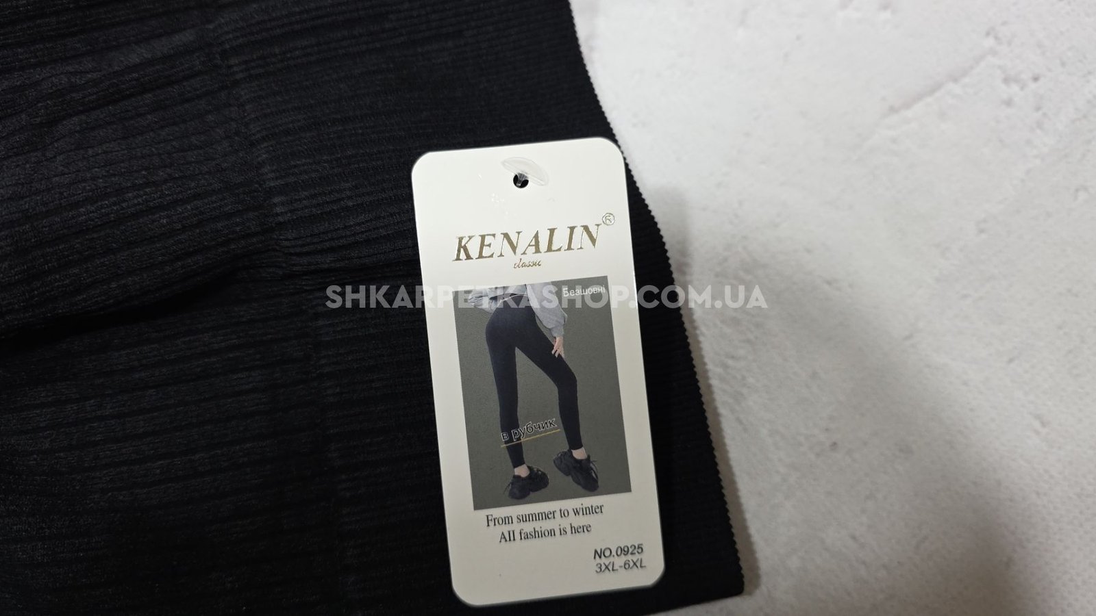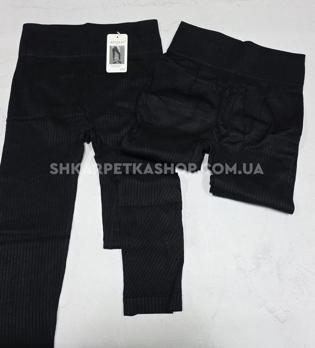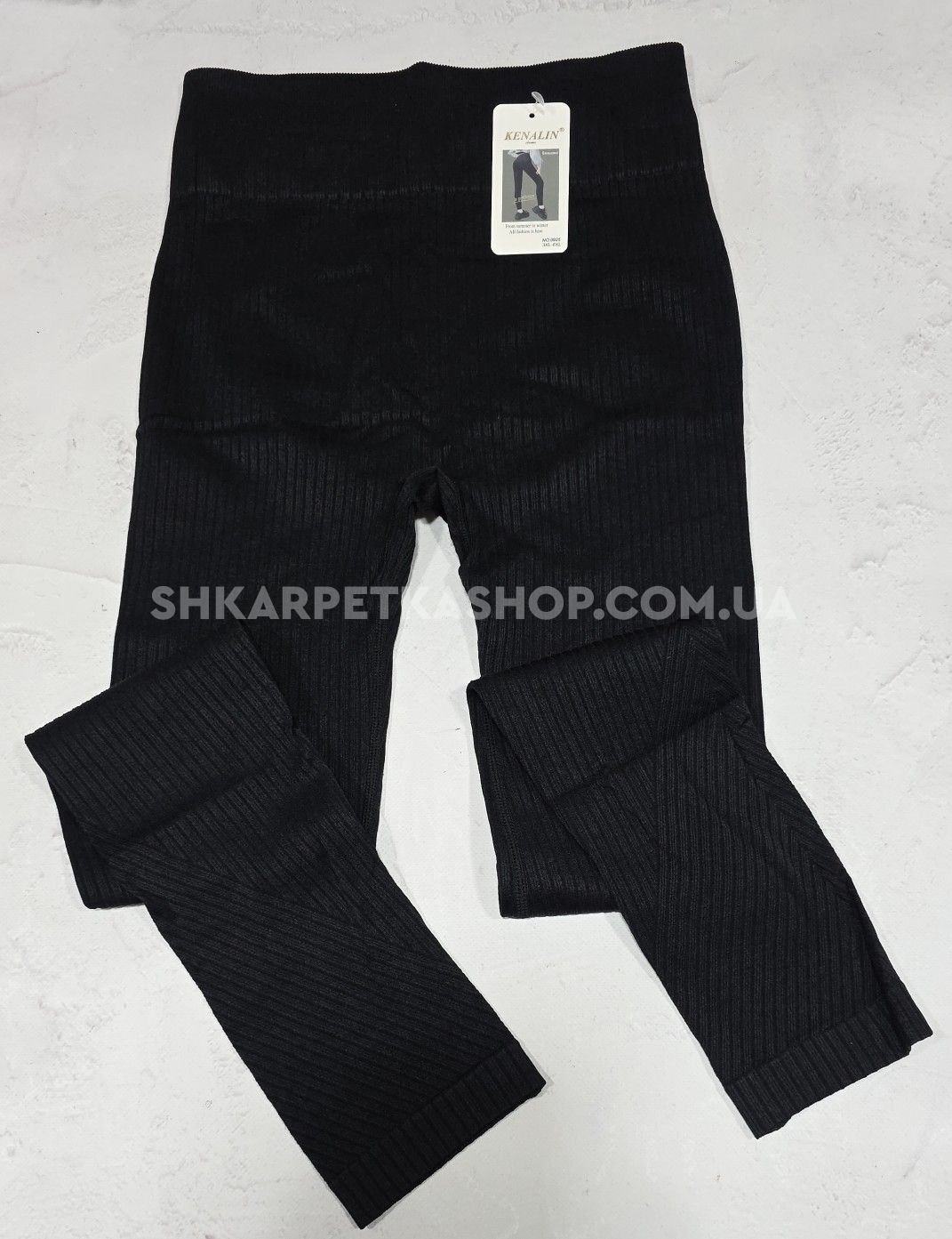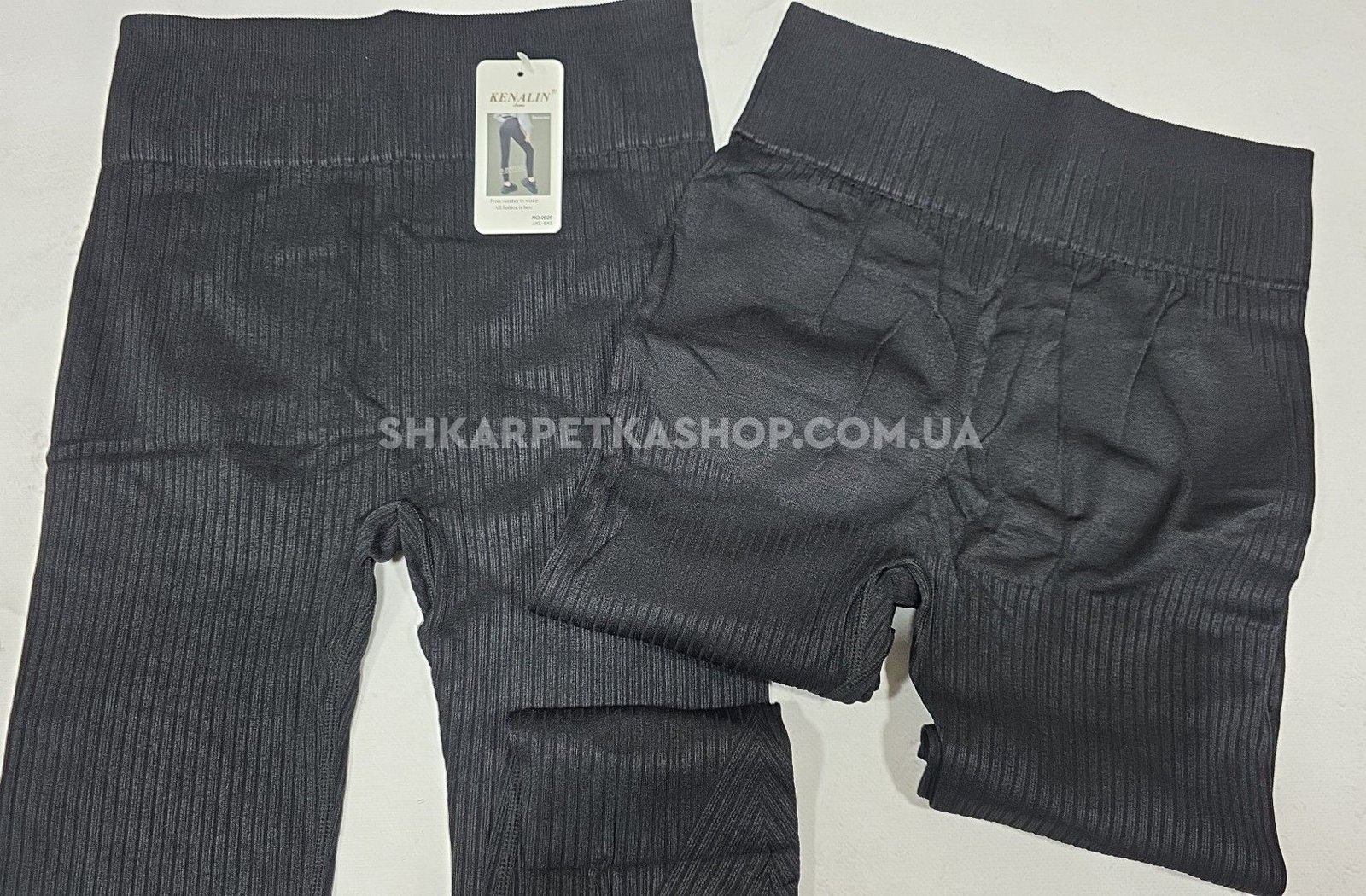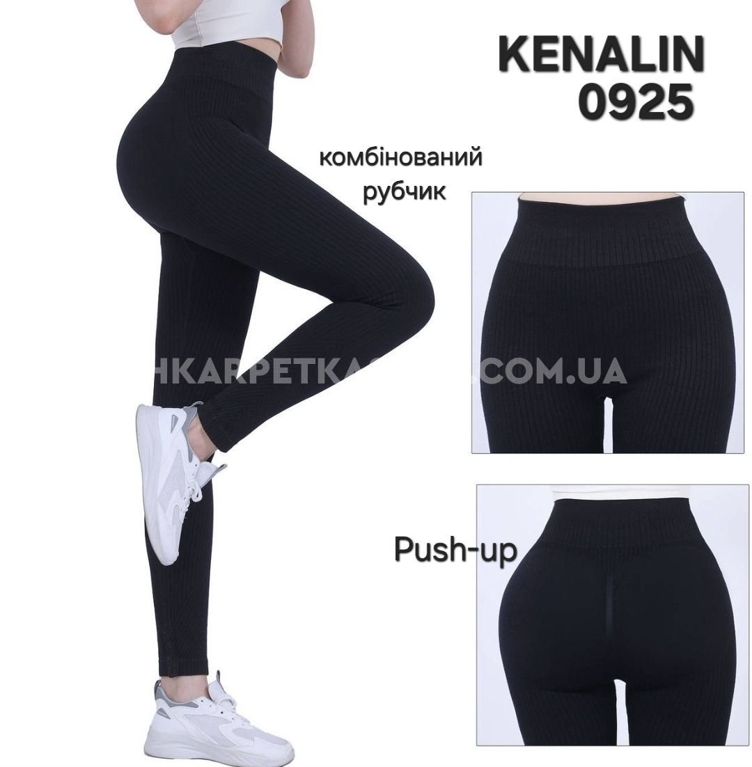 Лосини "Kenalin" 0925 безшовні щільні в широкий комбінований рубчик +позаду ефект пуш-ап (Push-up) +зверху широкий пояс, р. 3ХL/6XL-(46-50) -(чорні)