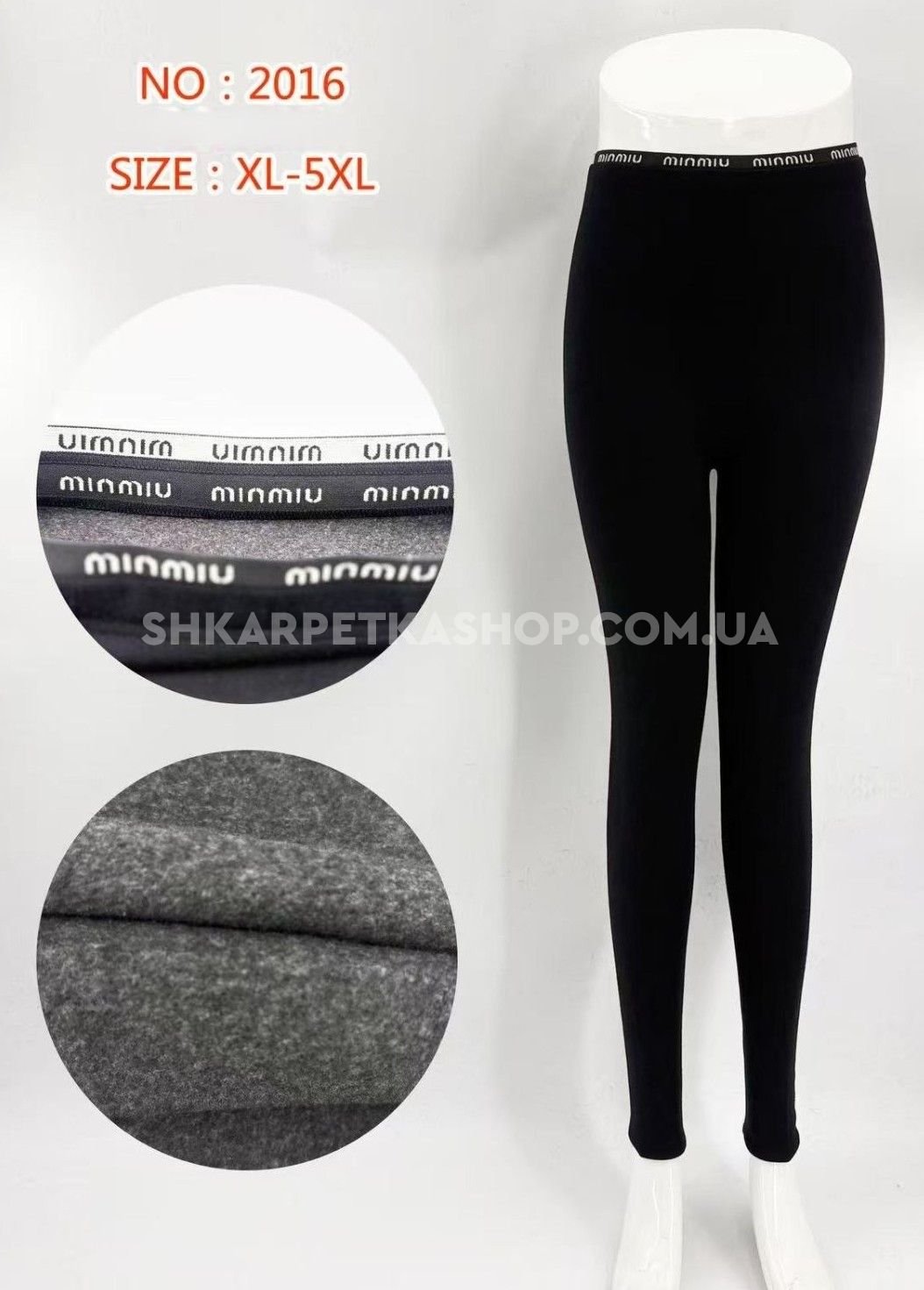 Лосини "Kenalin" NO:2016 безшовні з еластичного бавовняного трикотажу на збитому флісі +на додатковій плоскій резинці написи, р. XL-5XL-(44-48) -(чорні)