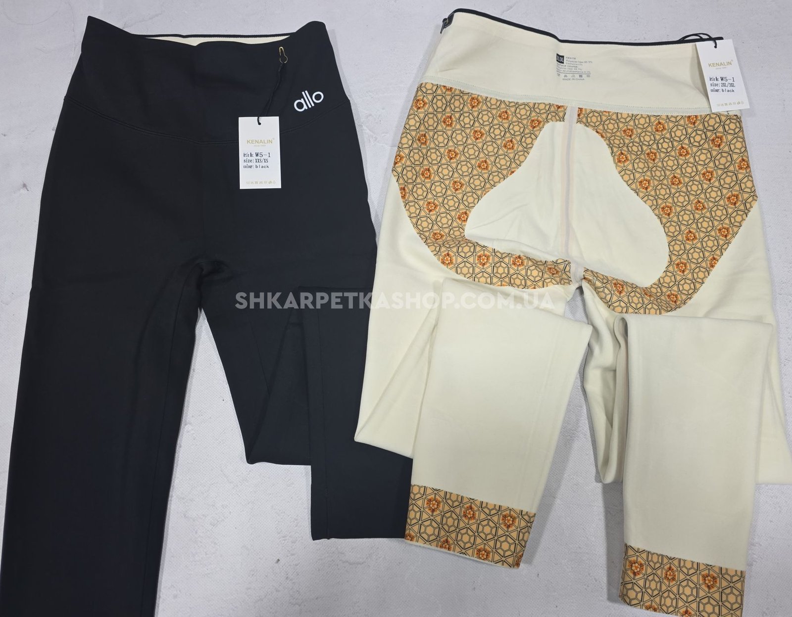 Лосини "Kenalin" W-5-1 гладкі на збитому плюшевому флісі з коригуючою мембраною та тейпами +з широким поясом утяжкою +з підтяжкою живота та сідниць, р. XXS/XS-(42-46), L/XL-(46-50), 2XL/3XL-(48-52) -(чорні)
