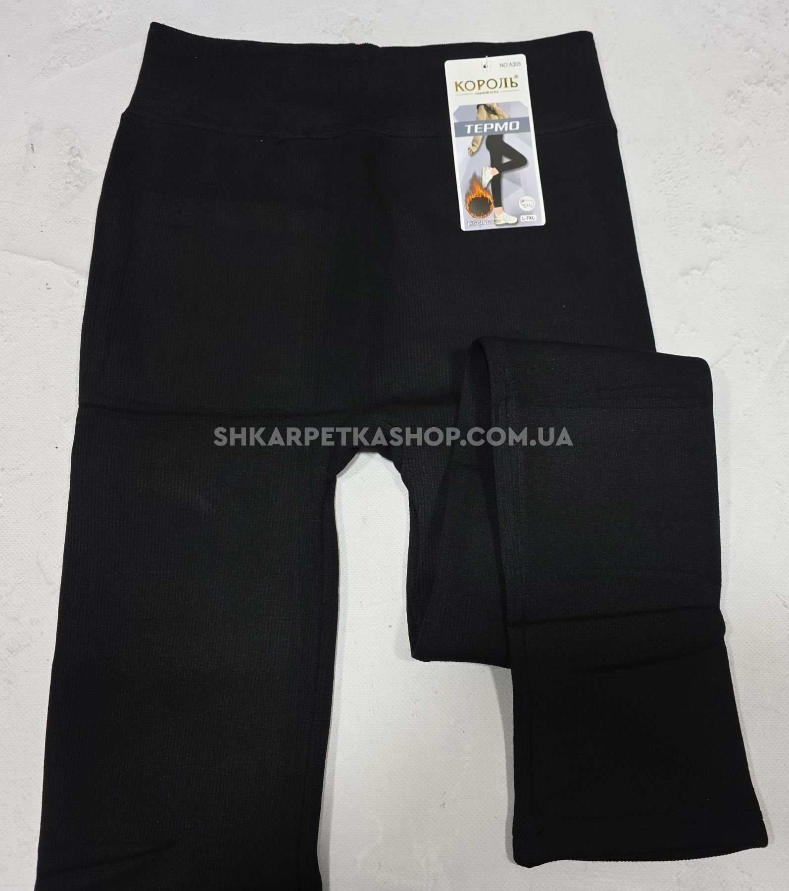 Лосини "Король" А-305 безшовні в рубчик на товстому хутрі з додаванням вовни, р. L/7XL-(48-52) -(чорні)