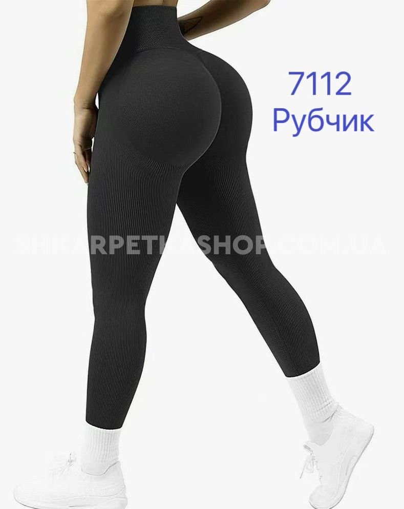 Лосини "Король" G-7112 безшовні в рубчик +з широким поясом +з ефектом пуш-ап (Push-up), р. M/L-(44-48), XL/2XL-(46-50) -(чорні)
