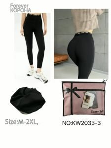 Лосини "Корона" KW-2033-3 /М-2XL гладкі з еластичного бавовняного трикотажу, з підтягуючим ефектом +на додатковій плоскій резинці написи, р. 42-46 -(чорні)