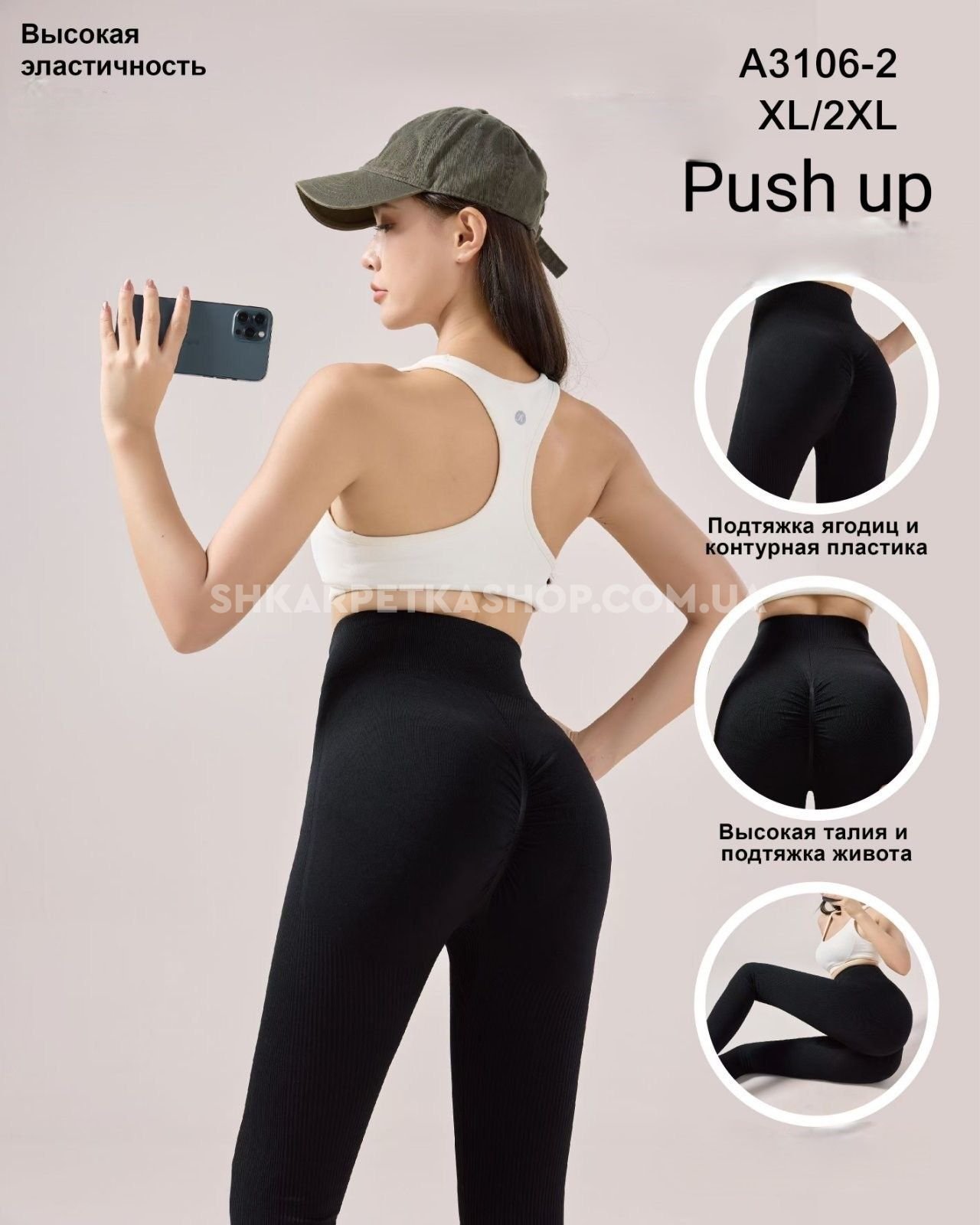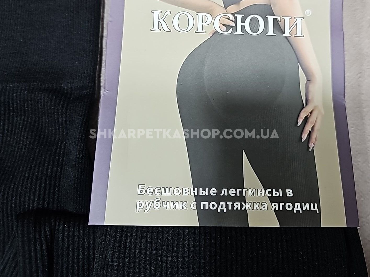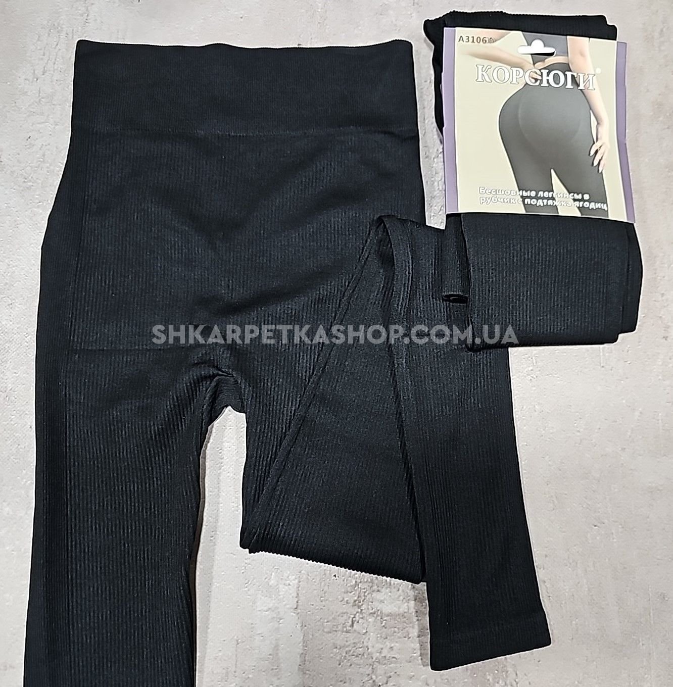 Лосини "Корсюги" 3106-2-XL/2XL безшовні еластичні в рубчик з ефектом пуш-ап (Push-up) та з підтримкою сідниць +широкий пояс, р. XL/2XL-(46-52) -(чорні)