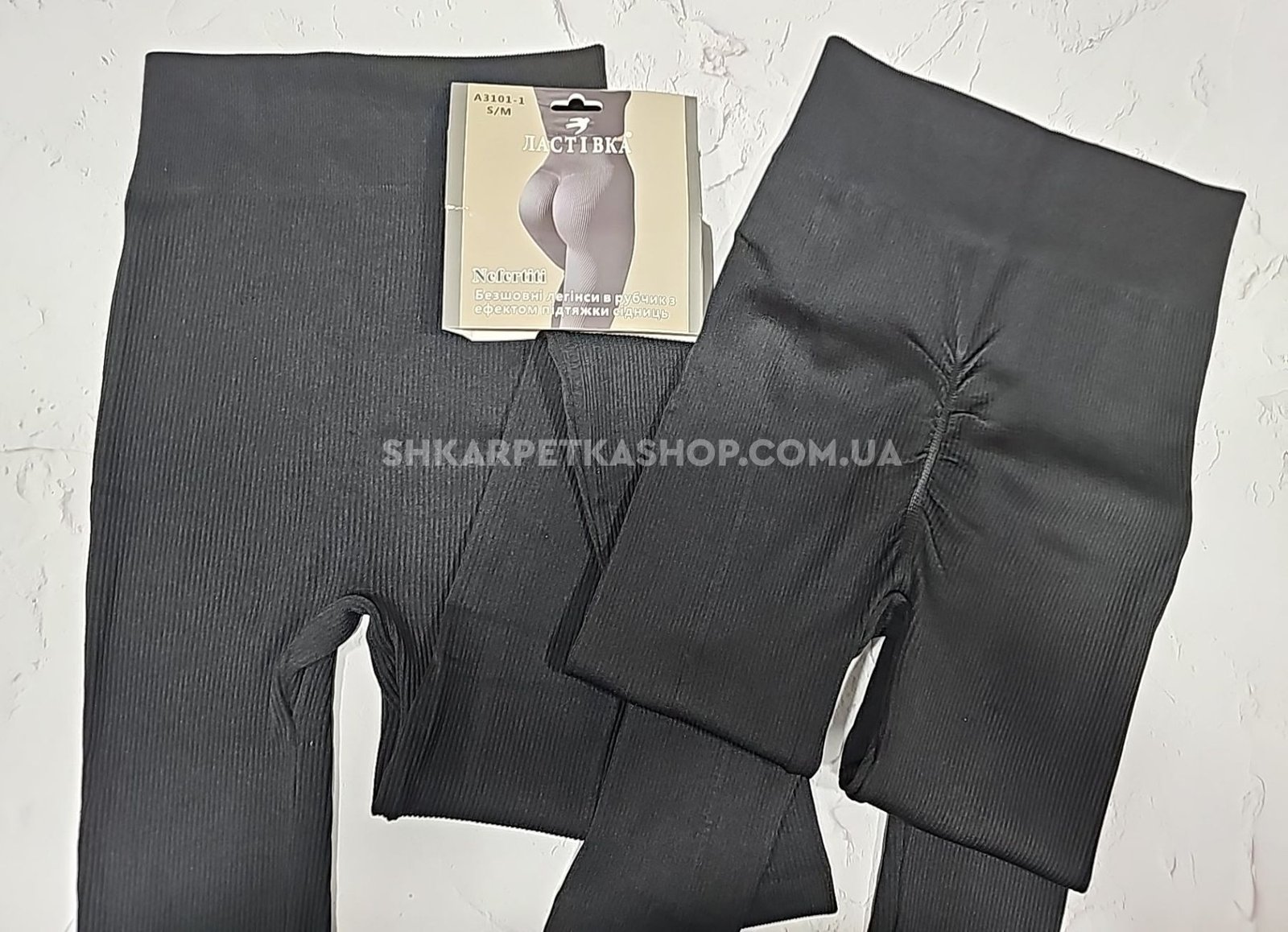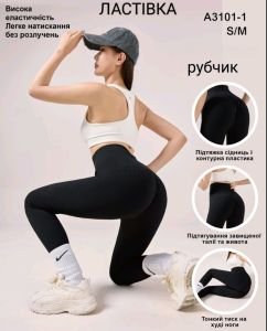 Лосини "Ластівка" 3101-1 /(448) безшовні еластичні в рубчик та позаду з ефектом пуш-ап (Push-up), р. S/M-(46-48) -(чорні)