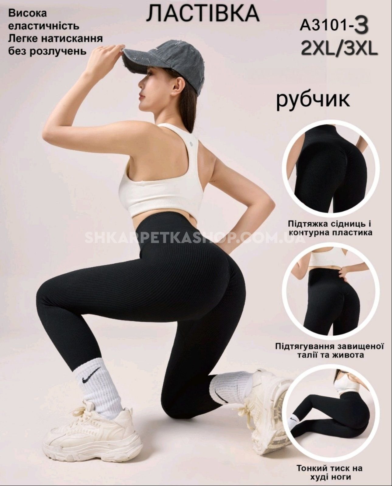Лосини "Ластівка" 3101-3 /(667) безшовні еластичні в рубчик та позаду з ефектом пуш-ап (Push-up), р. 2XL/3XL-(50-52) -(чорні)