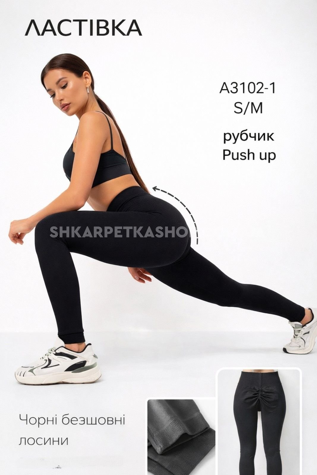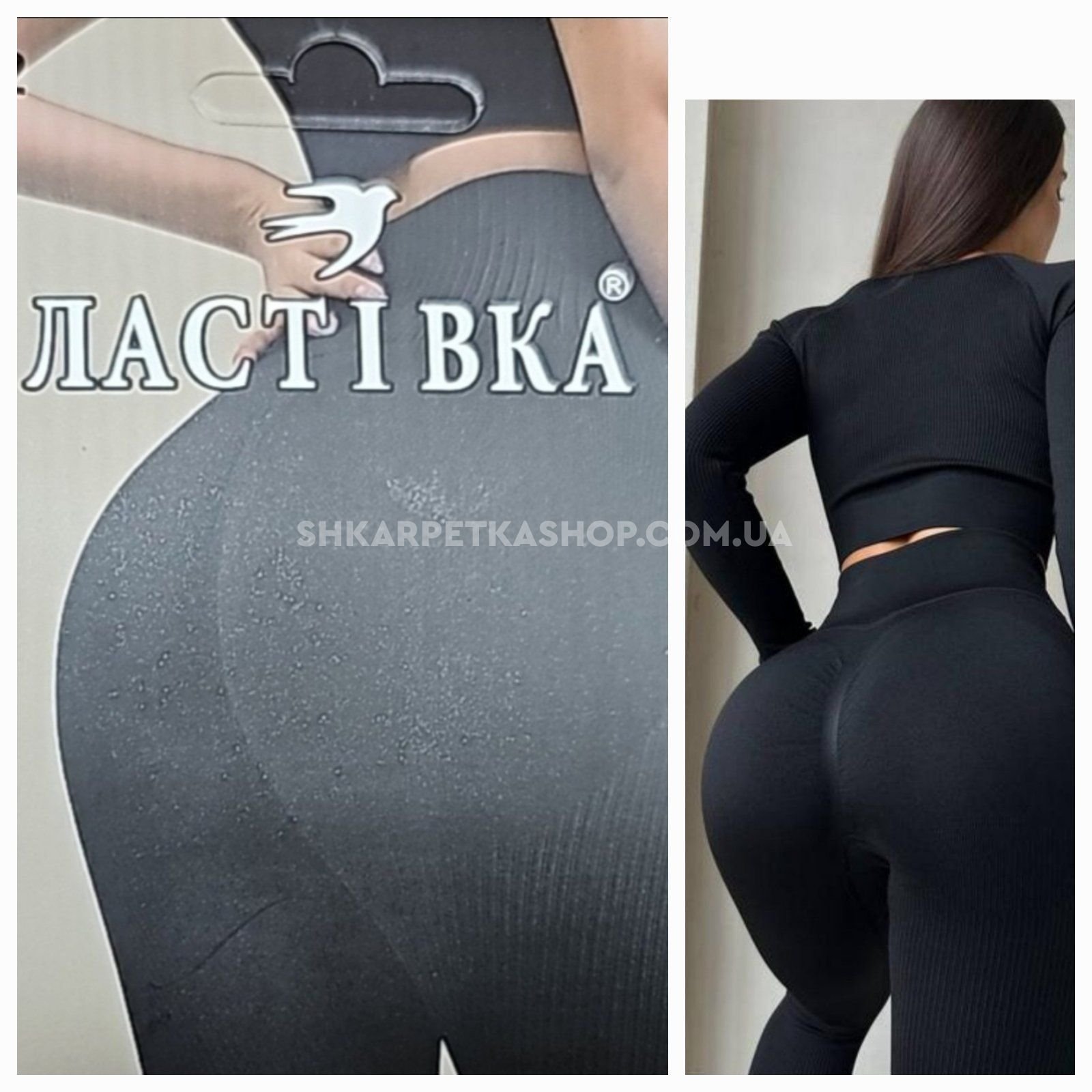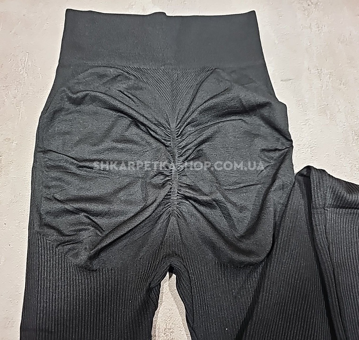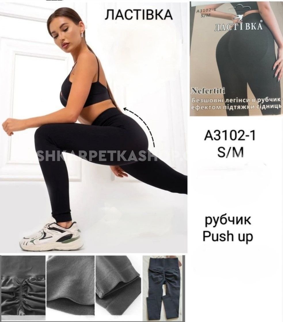 Лосини "Ластівка" 3102-1 безшовні еластичні в рубчик з ефектом пуш-ап (Push-up) та з підтримкою сідниць +широкий пояс, р. S/M-(48-52) -(чорні)