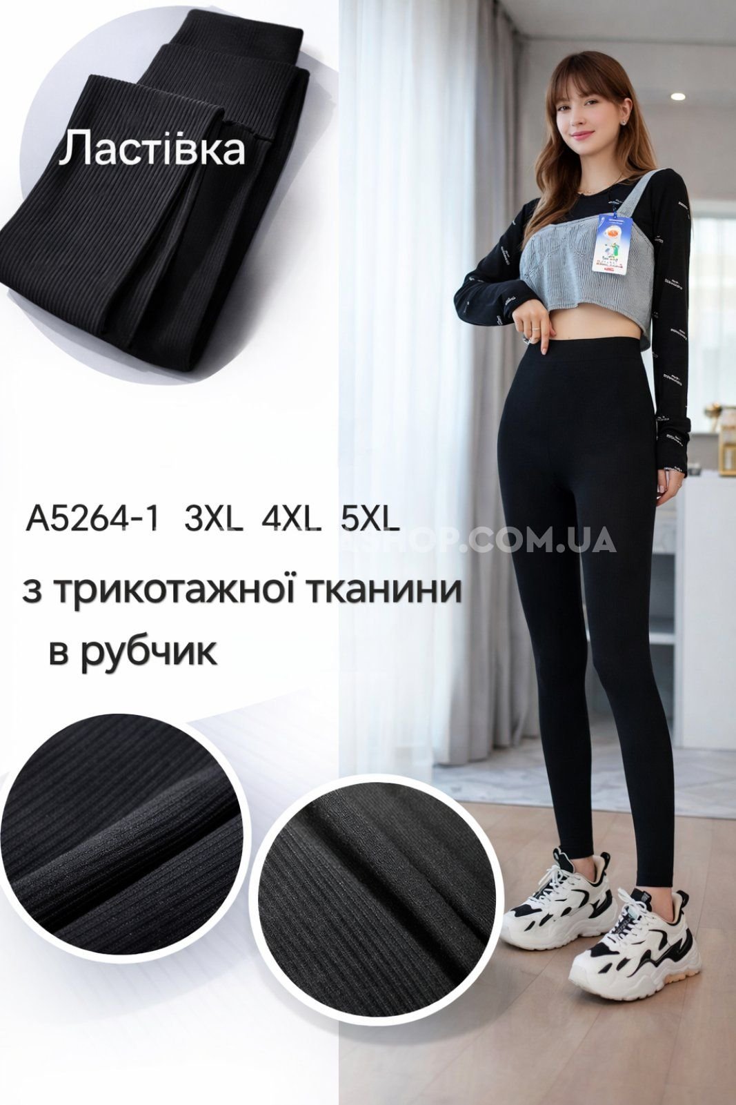 Лосини "Ластівка" 5264-1 з трикотажної тканини в рубчик з шовковистим ефектом, р 3ХL-(50-54), 4ХL-(52-56), 5ХL-(54-58) -(чорні)