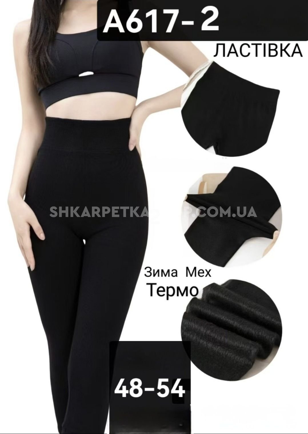 Лосини "Ластівка" А-617-2 /48-54 термо безшовні на тонкому хутрі -(чорні)