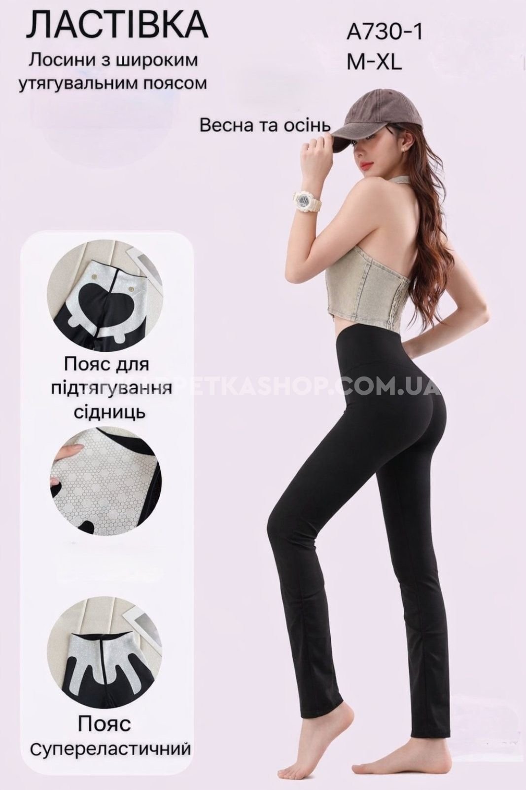 Лосини "Ластівка" А-730-1 демі гладкі з коригуючою мембраною та з тейпами +з чіпами, з широким поясом утяжкою +з підтяжкою живота та сідниць, р. М-(42-46) -(чорні)