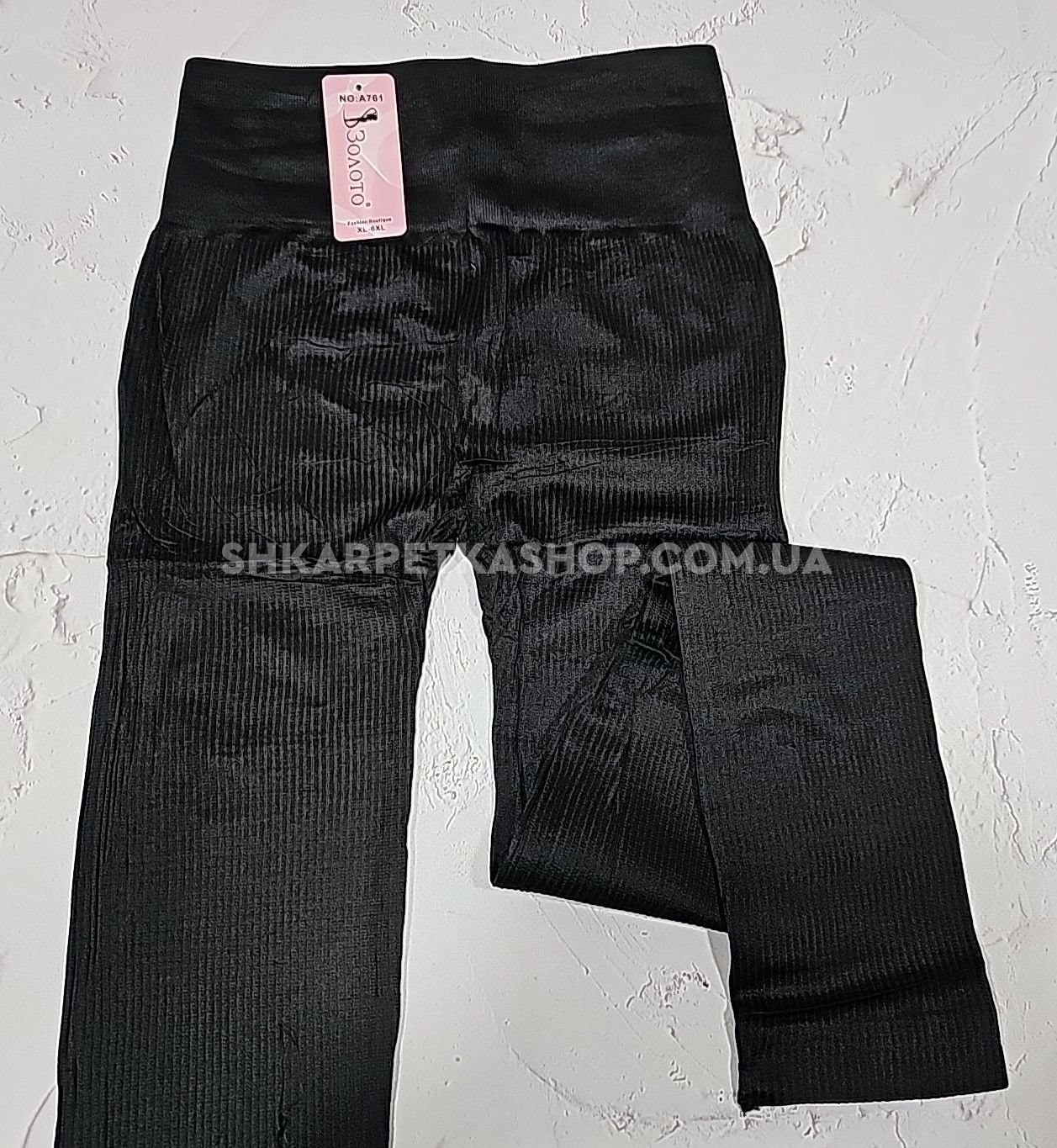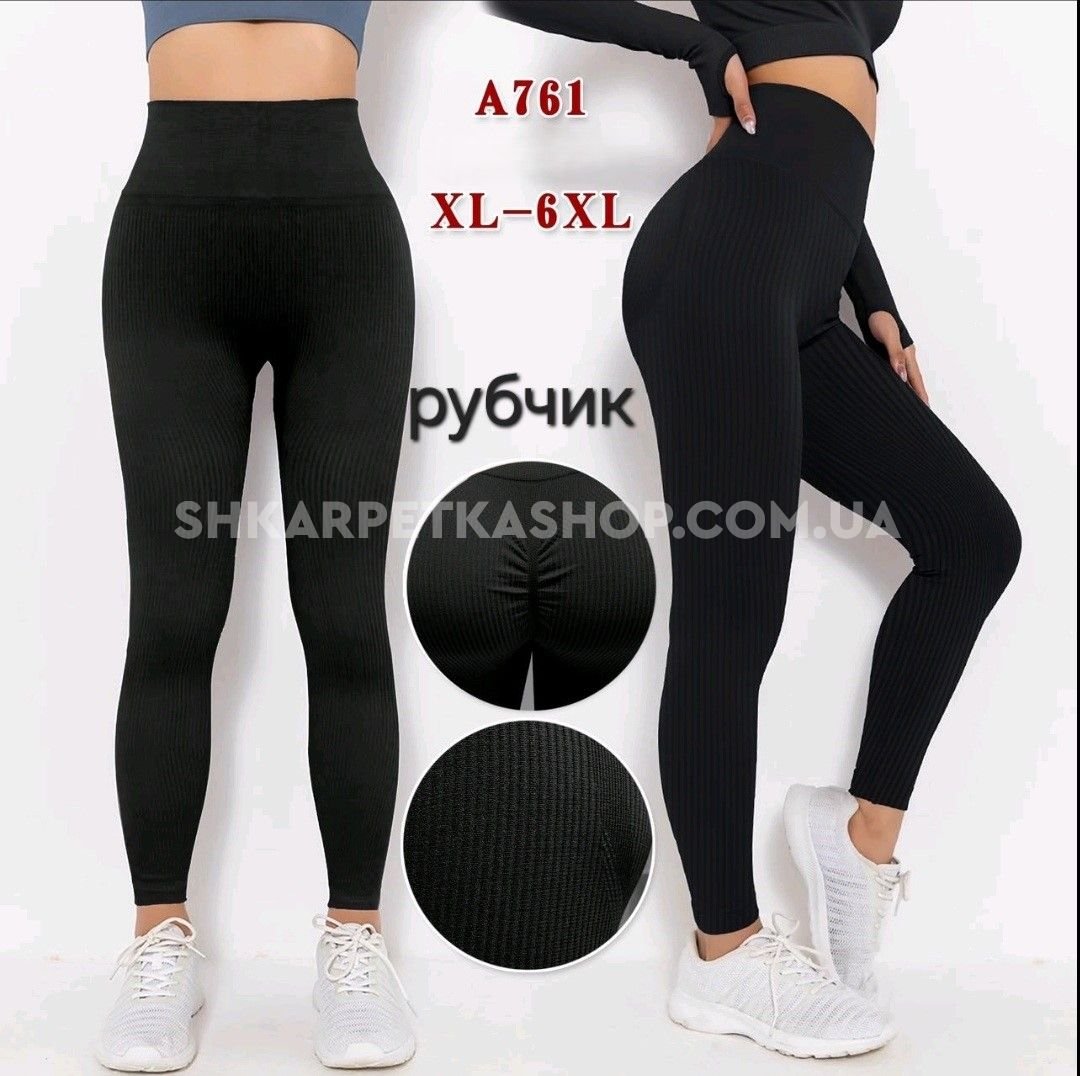 Лосини "Золото" 761 безшовні еластичні в рубчик та з ефектом пуш-ап (Push-up) +широкий пояс, р. XL-6XL-(46-52) -(чорні)