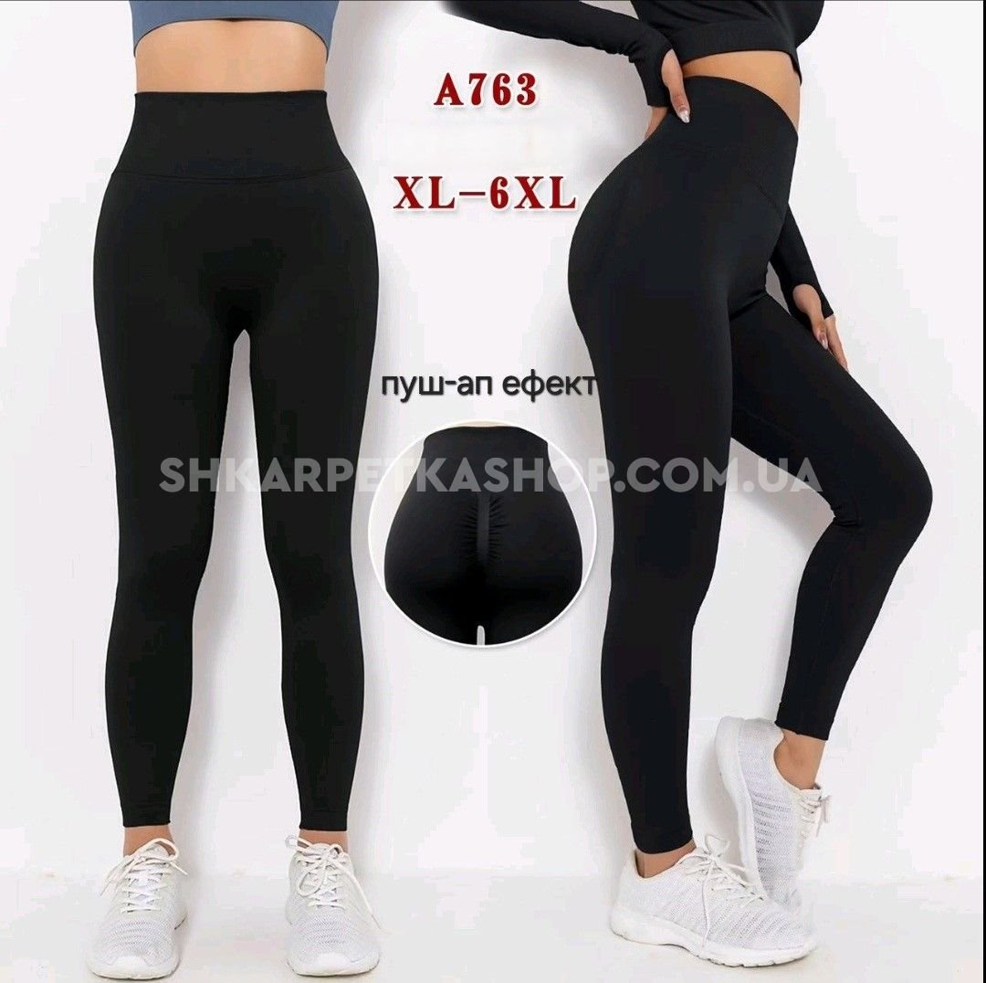 Лосини "Золото" 763 безшовні еластичні з ефектом пуш-ап (Push-up) +широкий пояс, р. XL-6XL-(46-52) -(чорні)
