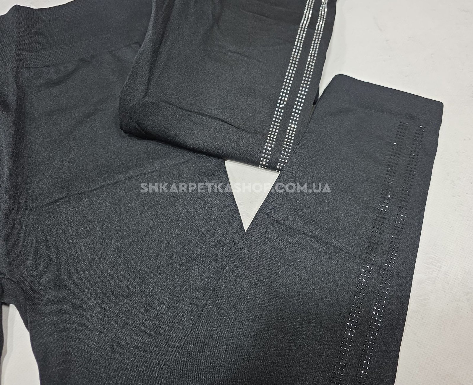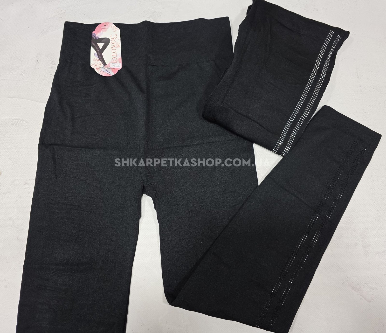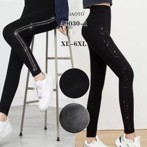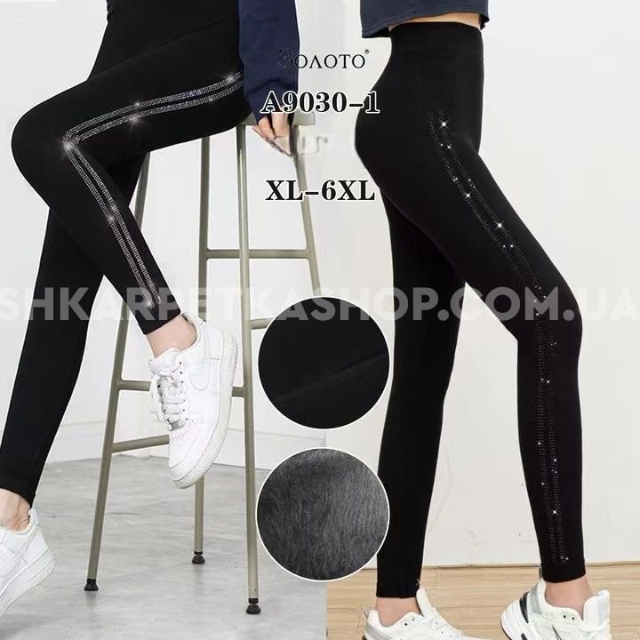 Лосини "Золото" 9030-1 безшовні з мікрофібри на тонкому хутрі +з боків лампаси зі страз, р. ХL/6XL (48-52) -(чорні)