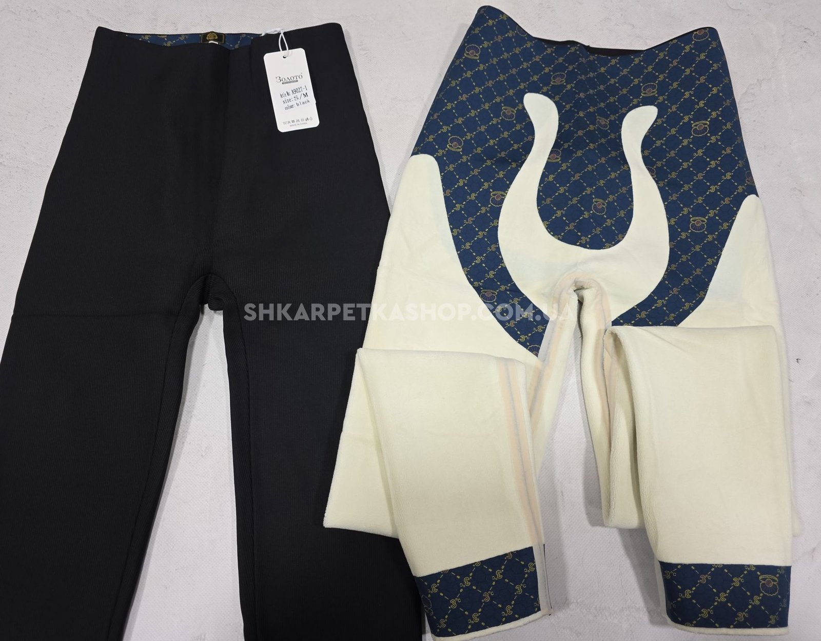 Лосини "Золото" А-9027-1-Р у дрібний рубчик на збитому плюшевому флісі з коригуючою мембраною та тейпами +з широким поясом утяжкою +з підтяжкою живота та сідниць, р. XXS/XS-(42-46), S/M-(44-48), L/XL-(46-50), 2XL3XL-(48-52) -(чорні)
