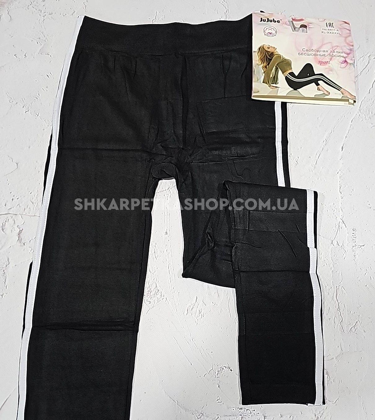 Лосини "JUJUBE" В-811-А безшовні бавовняні з еластаном, р. Хl/5xl-(48-52) -(чорні +з боків білі лампаси)