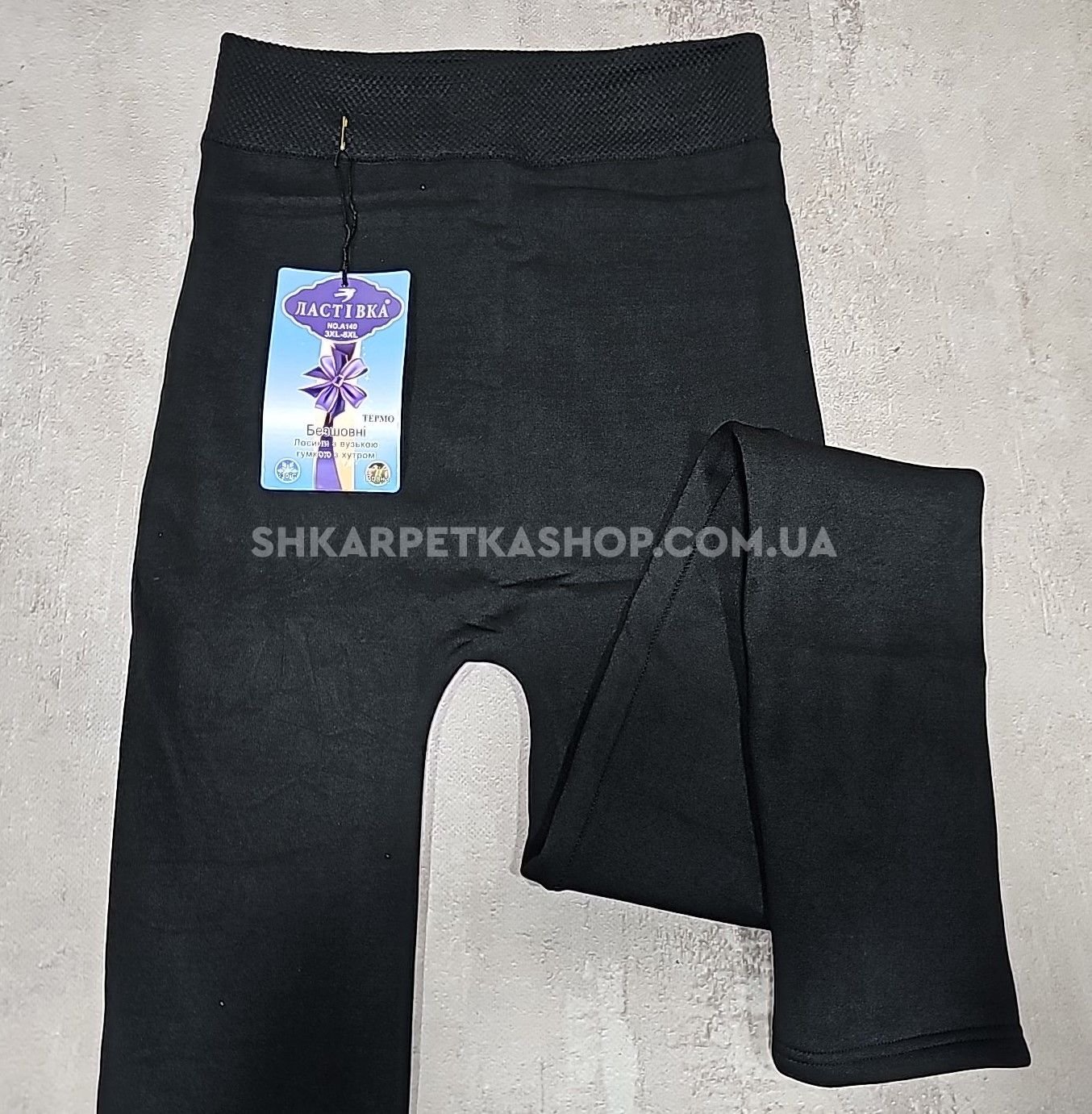 Лосини "Ластівка" А-140 термо безшовні на товстому хутрі + вовна, верх на вузькому поясі, р. 3хl/8xl-(50-54) -(чорні)