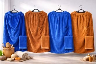 Набір рушників Y-3-А-48 із щільною мікрофібри +зверху на гумці +збоку кишеня р. 160*80 +рушник р. 70*35 -(Однотонні -без вибору кольору!)