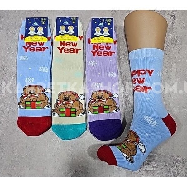 Шкарпетки "КРОКУС" 389-16 махрові дитячі, розмір за довжиною стопи: 16-18, 18-20, 20-22 -асорті -(Ведмедик з подарунком -махра)