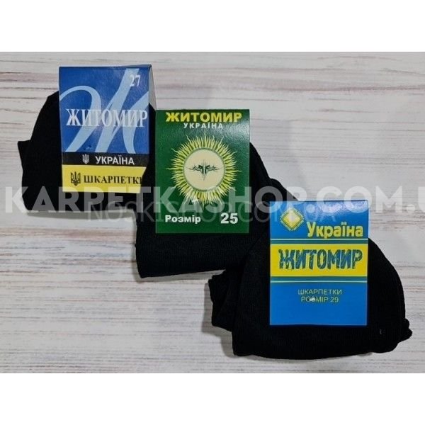 Шкарпетки Житомир "П.П.Гроза Х/Б" 251-0 х/б-гладь бавовняні чоловічі, р. 25, 27, 31, 33 -(Х/Б -чорні -уп. 12 шт)