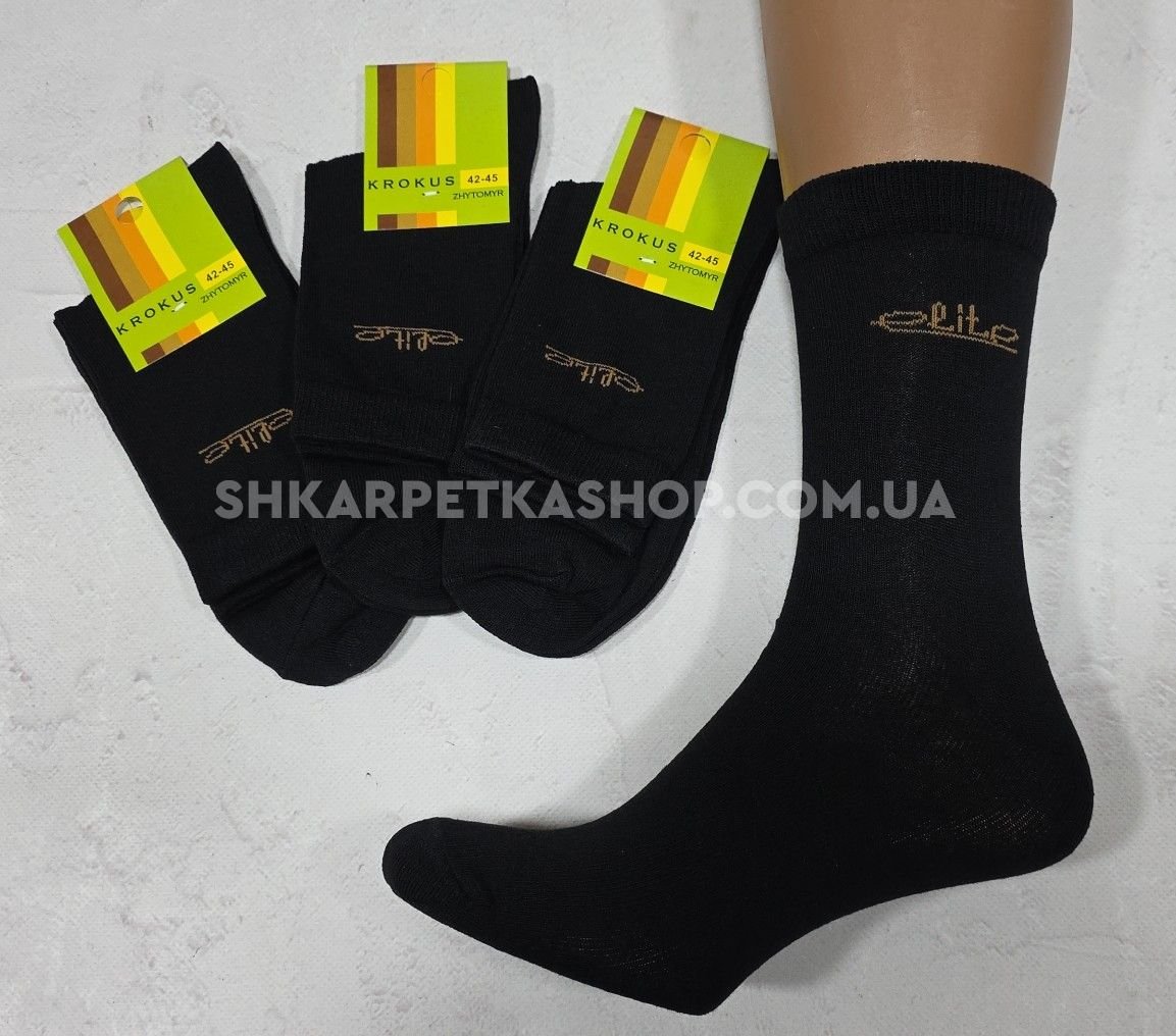 Шкарпетки Житомир "Крокус" 013-1 стрейч чоловічі "Класика з вишивкою Elitte" р. 39-42, 42-45 -(чорні -стрейч)
