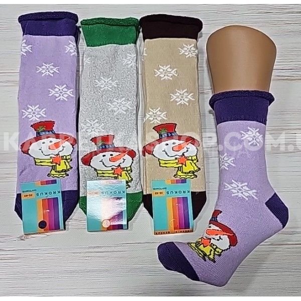 Шкарпетки Житомир "Крокус" 3372-2 махрові жіночі, р. 36-40 -випадкове асорті -(Сніговик в червоному капелюсі + жовтий шарф -махра)
