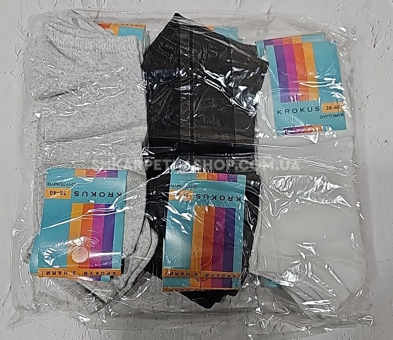 Шкарпетки Житомир "Krokus" 770-3 економ /стрейч жіночі, р. 36-40 ("економ" короткі -сірий/білий/чорний -стрейч) -уп. 12 шт