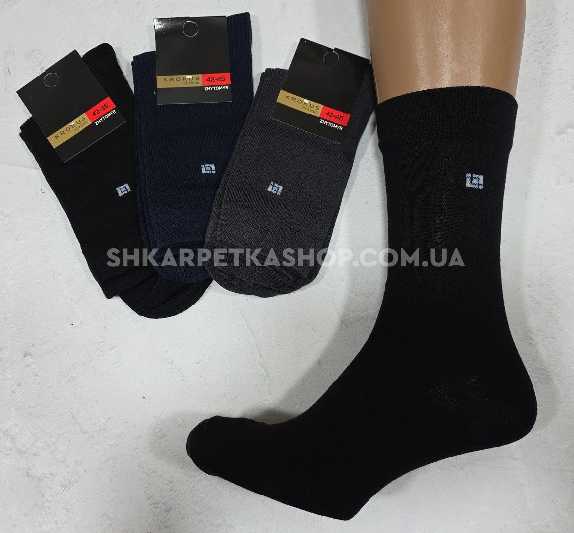Шкарпетки Житомир "Krokus-CLASSIC" 138-2 cotton-стрейч чоловічі "Класика-високі -бавовна", р. 39-42, 42-45, 45-47 -(асорті /cotton -класика-високі) -уп. 12 шт