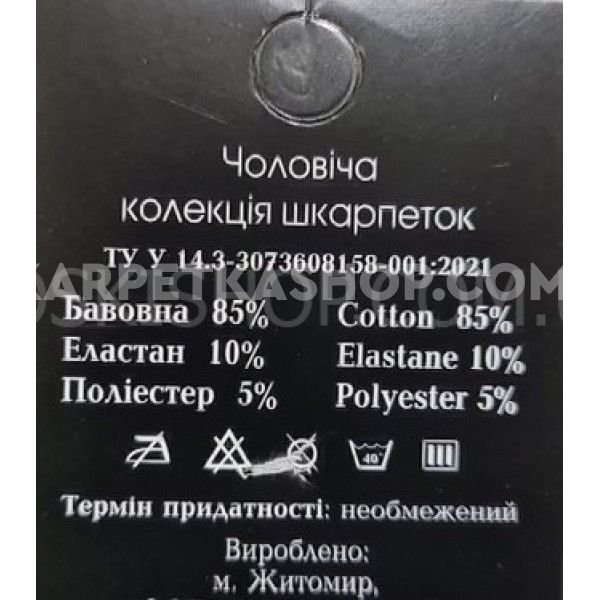 Шкарпетки Житомир "Limerence LUX" 887-52 cotton-стрейч чоловічі -(узбецька бавовна), р. 41-45 -(білі -короткі -LUX -чол.) -уп. 12 шт