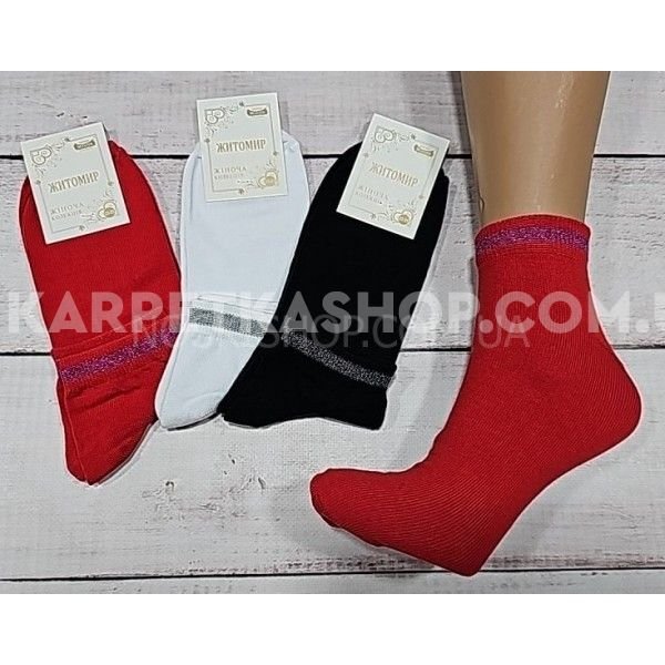 Шкарпетки Житомир "Master" 195-9 бавовна-стрейч жіночі "з люрексом" р. 23-25 -асорті -(на однотонних резинка з люрексом) -уп. 12 шт