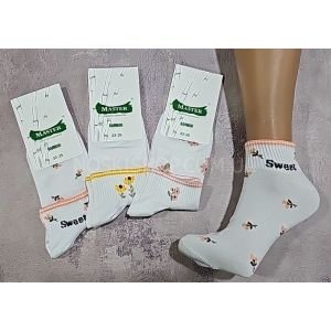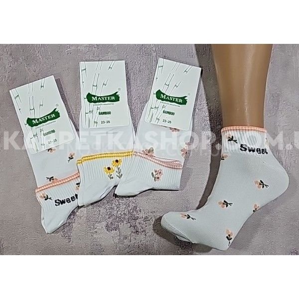 Шкарпетки Житомир "Master" 931-21 бамбук стрейч жіночі, р. 23-25 -(білі -середня резинка +помаранчеві/рожеві/жовті квіточки і ободок +sweet) -уп. 12 шт