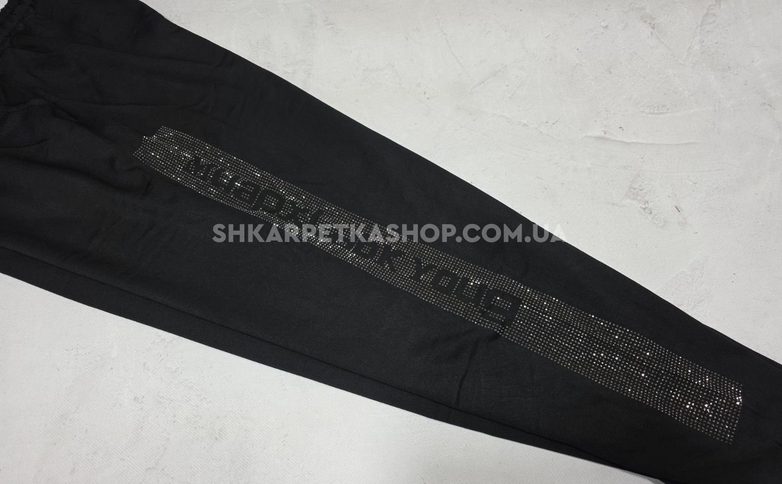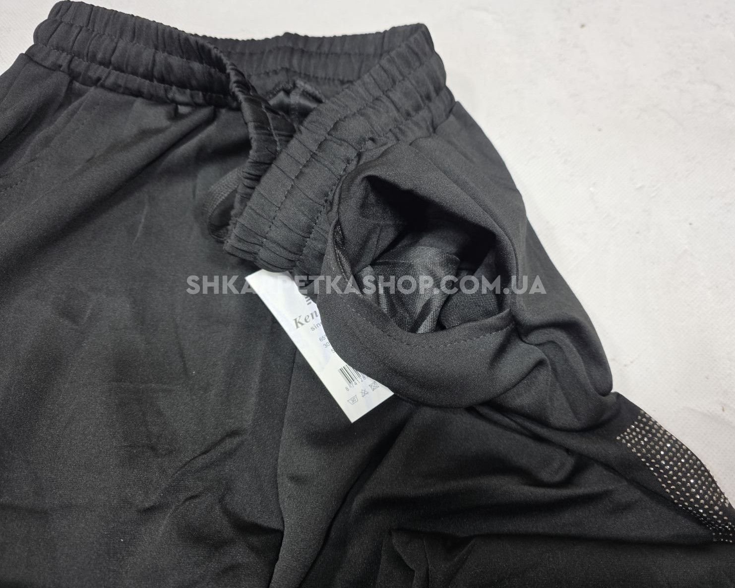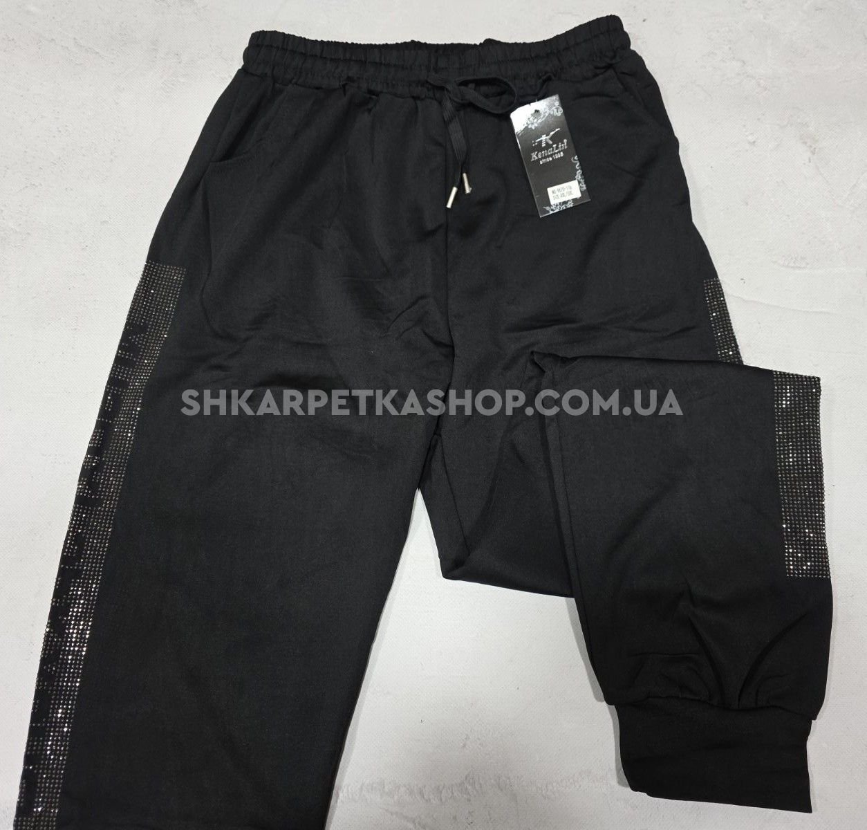 Прогулянкові штани "Kenalin" 9670-11b /1b батал, низ на широкому манжеті +верх на резинці +з боків широкі лампаси з камінчиків та написом +кишені, р. 5XL/6XL-(52-54), 6XL/7XL-(54-56) -(чорні)