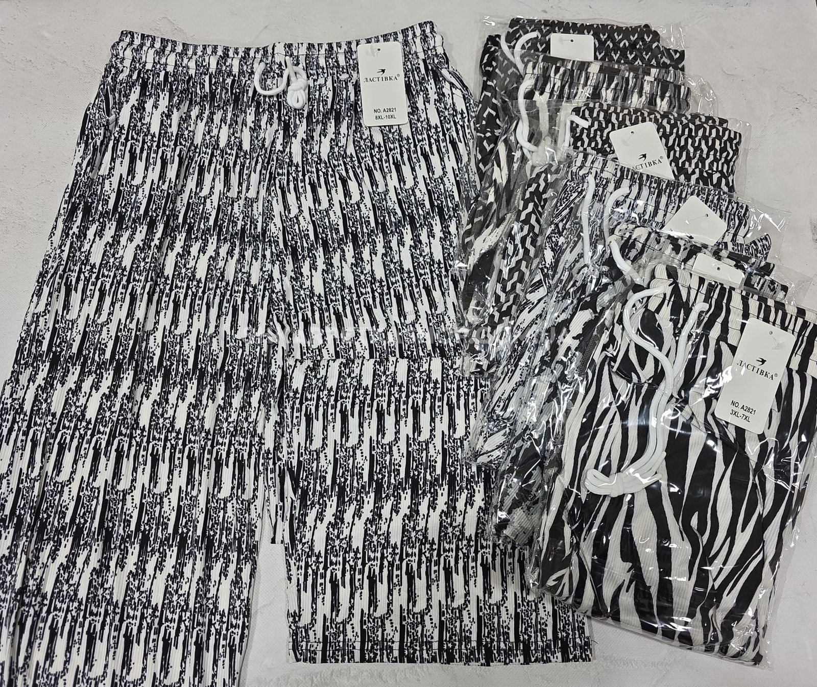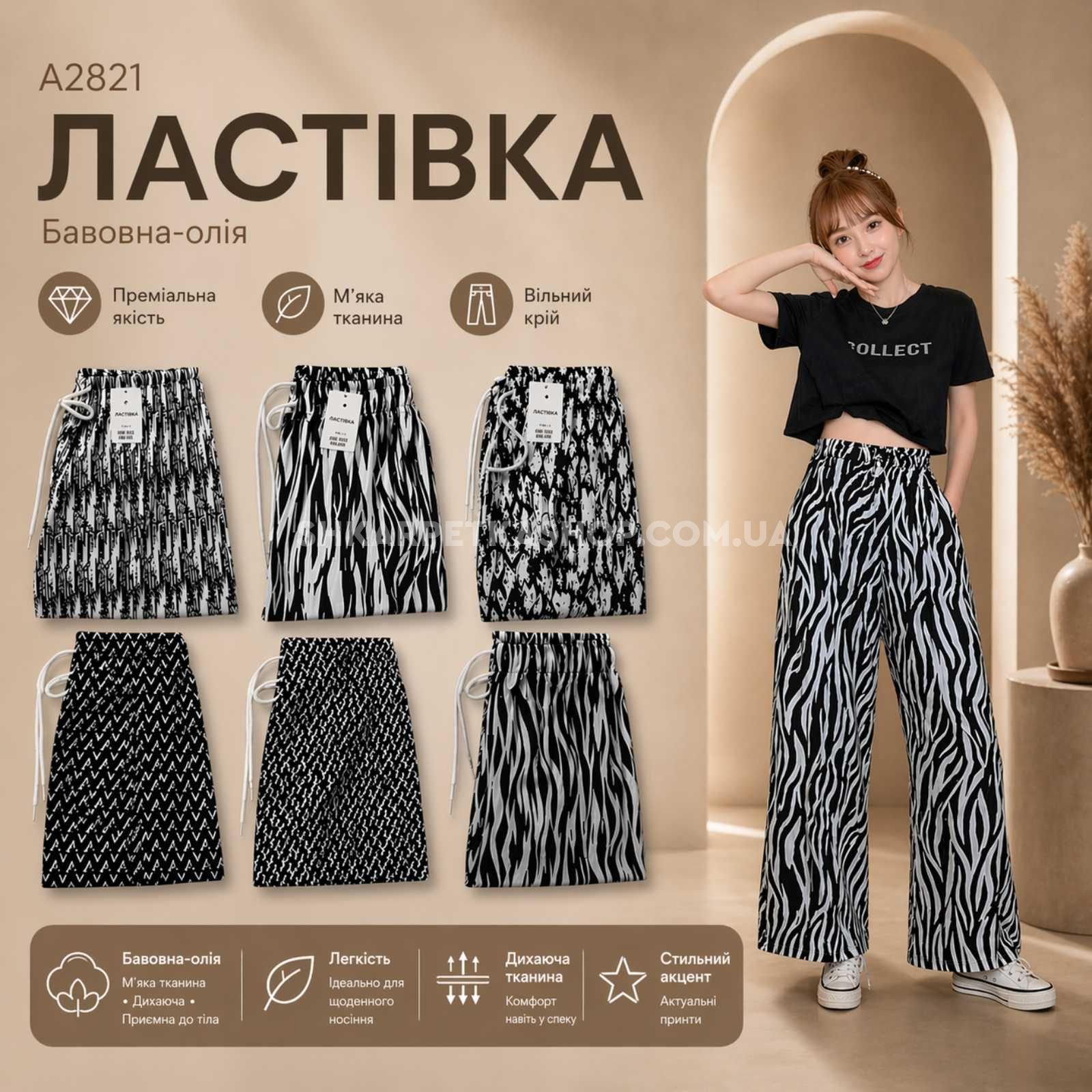 Прогулянкові штани "Ластівка" А-2821 з легкої тканини жатка, вільного крою з широким низом, пояс на резинці, з боків кишені, р. 3XL/7XL-(46-50), 8XL/10XL-(48-52) -(Без вибору забарвлення!)