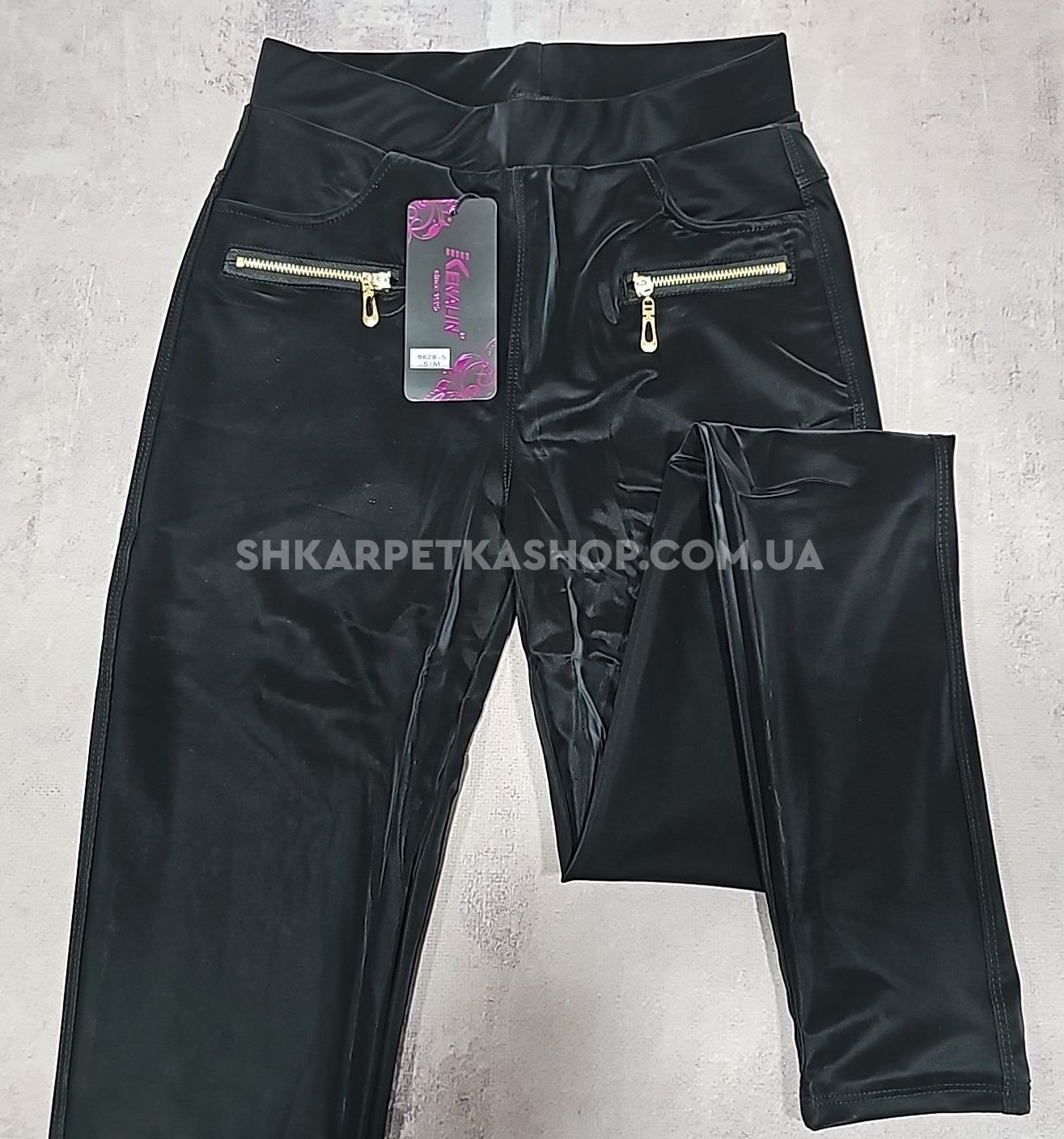 Лосини "KENALIN" 9628-5 екошкіра з ефектом блиску + спереду кишені на замочках р. S/M-(40-42) -(чорні)
