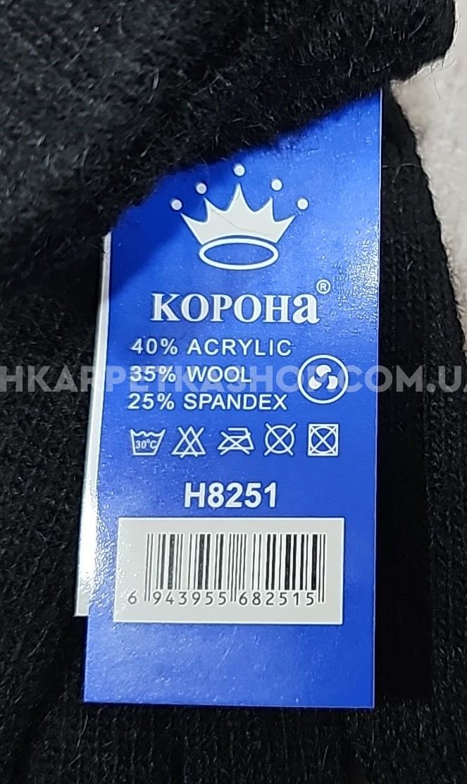 Рукавички чоловічі "Корона" Н-8251-(XXL) з начосом та з пальцями для сенсорного екрану -(чорні -чоловічі) -уп.12 шт.