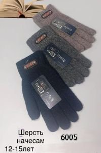 Рукавички підліткові "Anjela" 6005 з начосом та з пальцями для сенсорного екрану р. 12-15 років -(асорті /однотонні + на манжеті емблема "sport" -підліток) -уп. 12 шт.