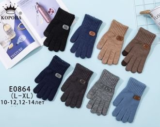 Рукавички підліткові "Корона" Е-0864 з начосом та з пальцями для сенсорного екрану, р. L-(10-12 років), XL-(12-14 років) -(асорті /однотонні + під манжетом емблема /хлопчик) -уп. 12 шт.