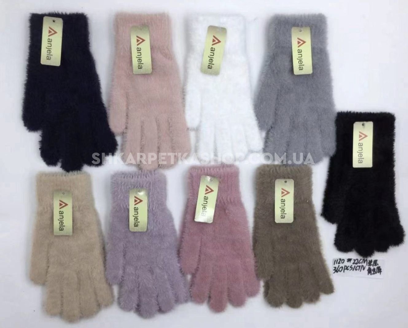 Рукавички жіночі "Anjela" 1120 норка з пальцями для сенсорного екрану, асорті -(однотонні з норки) -уп. 12 шт.
