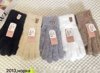 Рукавички жіночі "Anjela" 2013 норка з пальцями для сенсорного екрану, асорті -(однотонні з норки +на манжеті емблема) -уп. 12 шт.