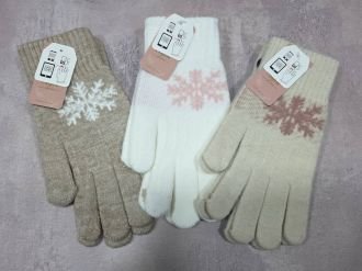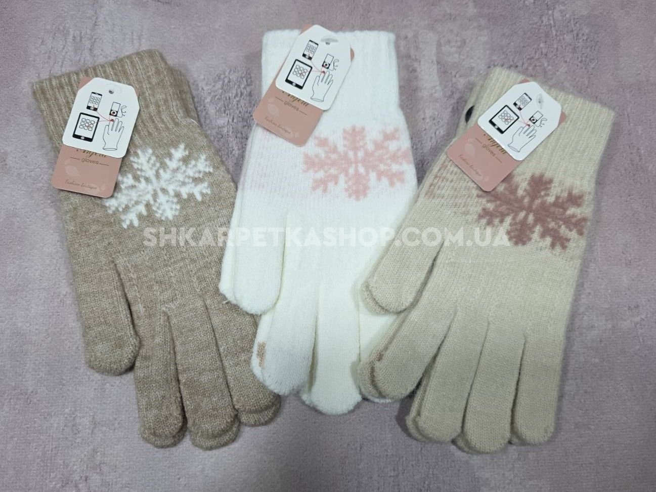 Рукавички жіночі "Anjela" 2031 з начосом +з пальцем для сенсорного екрану -(Карамельний мікс +на меланжевій вставці сніжинка) -уп. 12 шт.
