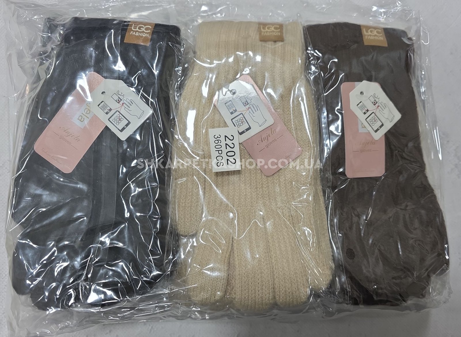 Рукавички жіночі "Anjela" 2202 з начосом +з пальцем для сенсорного екрану, асорті -(Однотонні в рубчик +на манжеті емблема UCC) -уп. 12 шт.