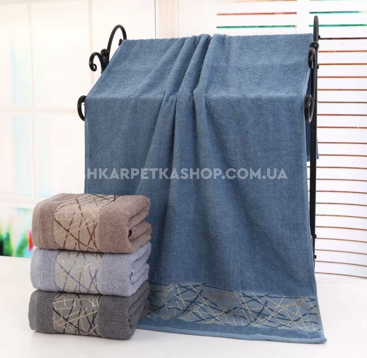 Рушник 2014-В-144 лицьовий cotton -махра, р. 100*50 -уп. 8 шт -(Однотонний +на вставці геометричний орнамент із тонких перехресних ліній -обличчя)