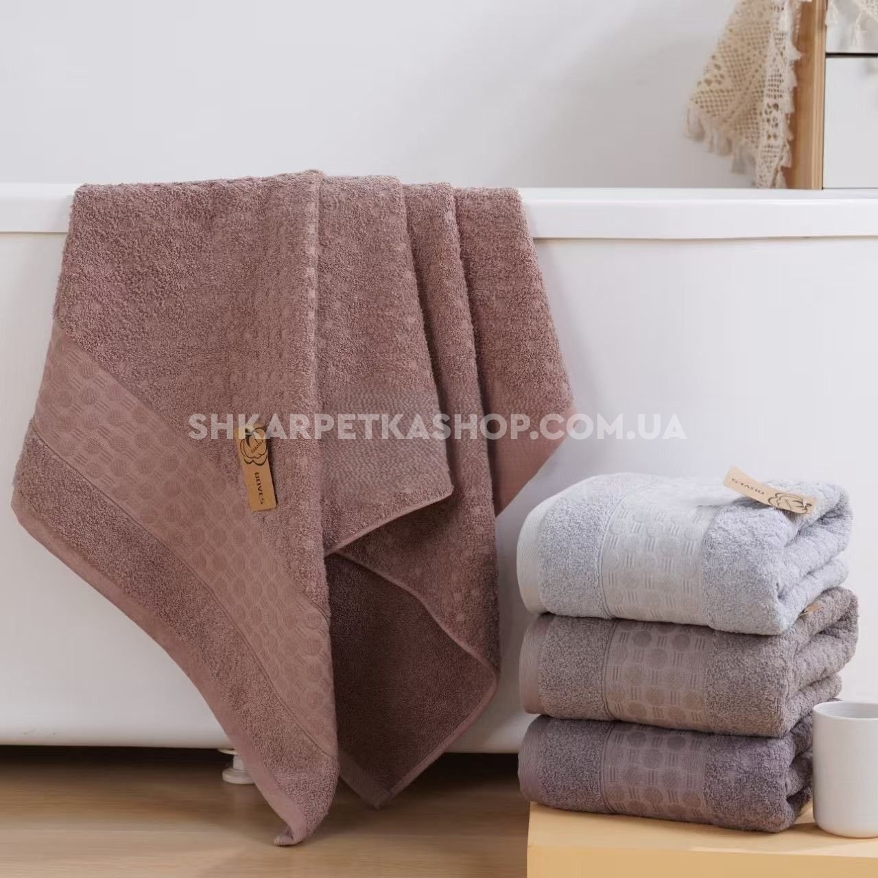 Рушник 70035-144 лицьовий cotton -махра, р. 100*50 -(Однотонний +вставка з дрібних кружечків та рисочок -обличчя) -в уп. 4 шт