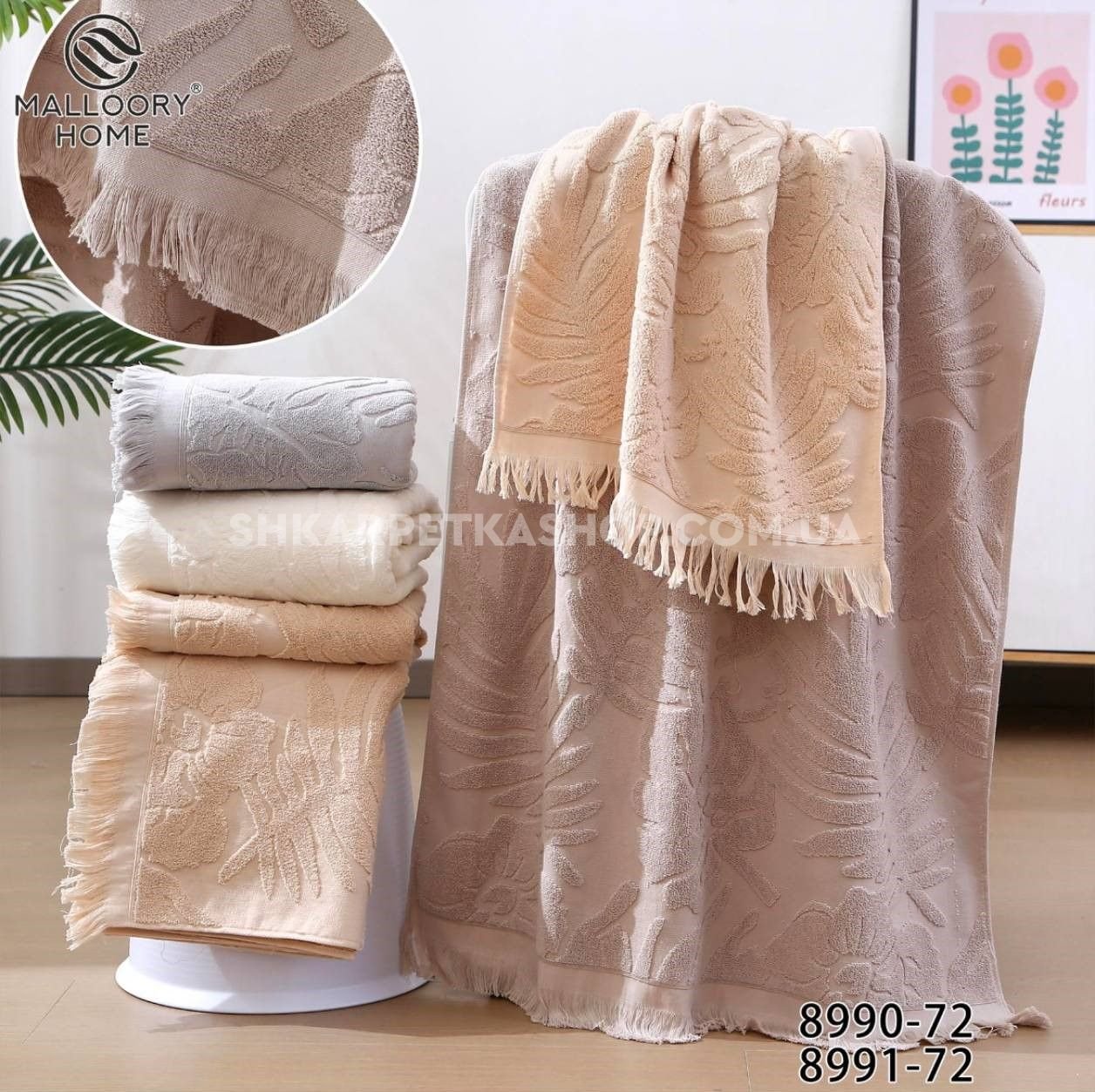 Рушник 8990-72 банний cotton -махра, р. 140*70 -уп. 8 шт -(Світло-кавовий мікс з рельєфними листочками та бахромою -баня)