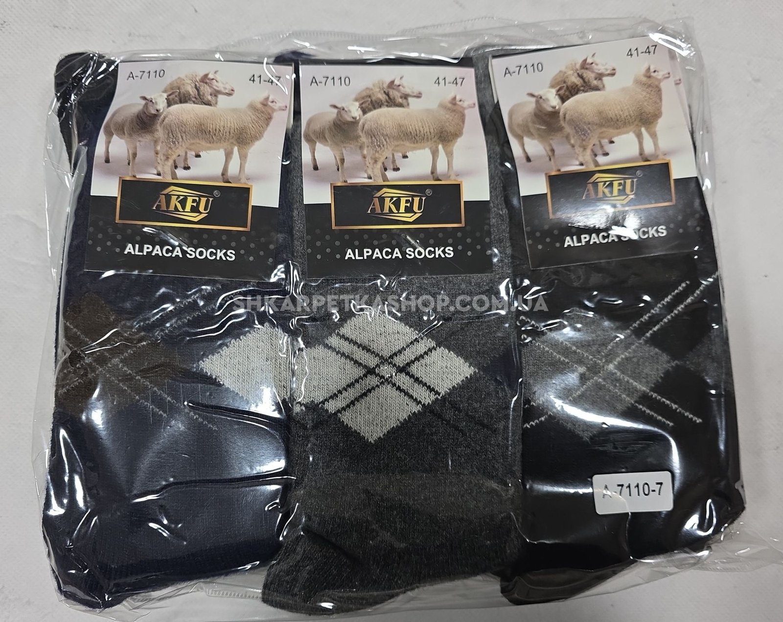 Шкарпетки "Akfu" А-7110-7 альпака чоловічі, р. 41-47 -асорті -(Однотонні +зверху великі ромби) -уп. 12 шт