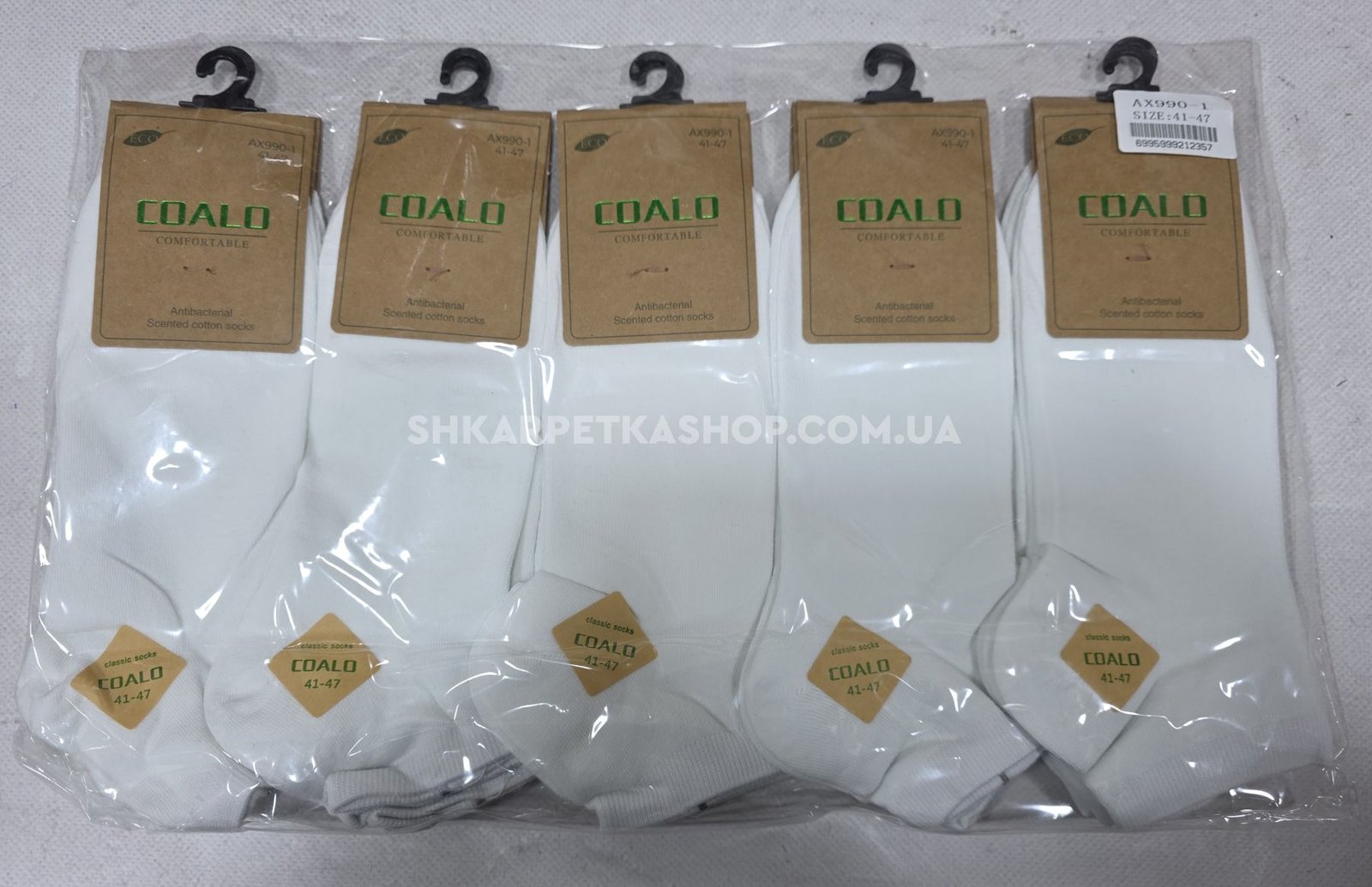 Шкарпетки "COALO" AX-990-1 стрейч /cotton чоловічі, р. 41-47 -(Короткі /білі -чол.) -уп. 10 шт